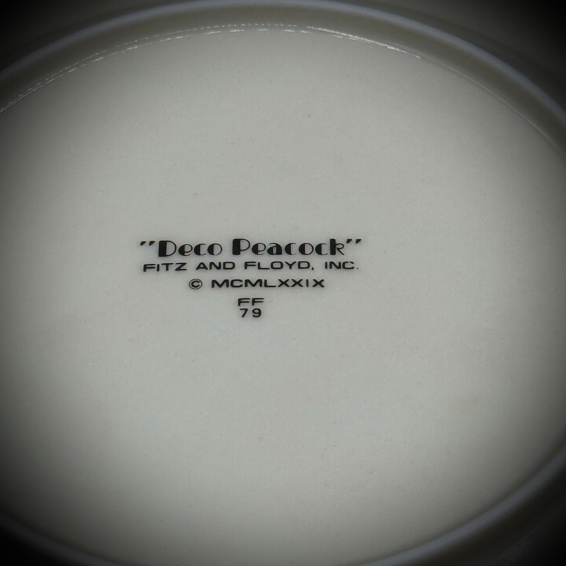 Set of 3 Vintage Fitz & Floyd Art Deco Style Peacock Dishes