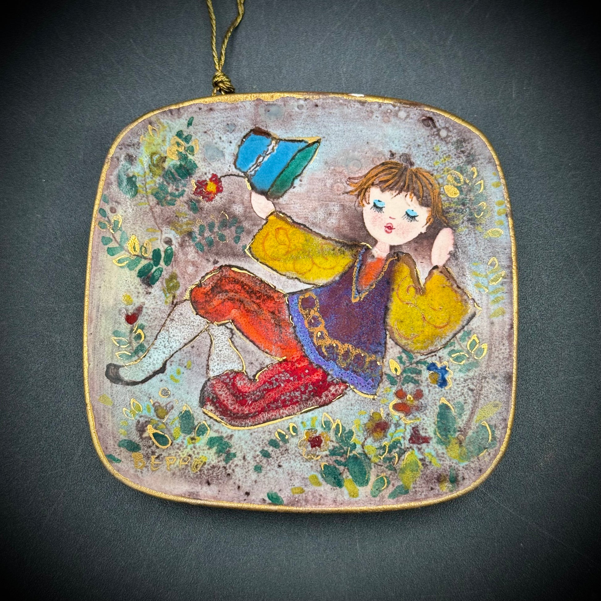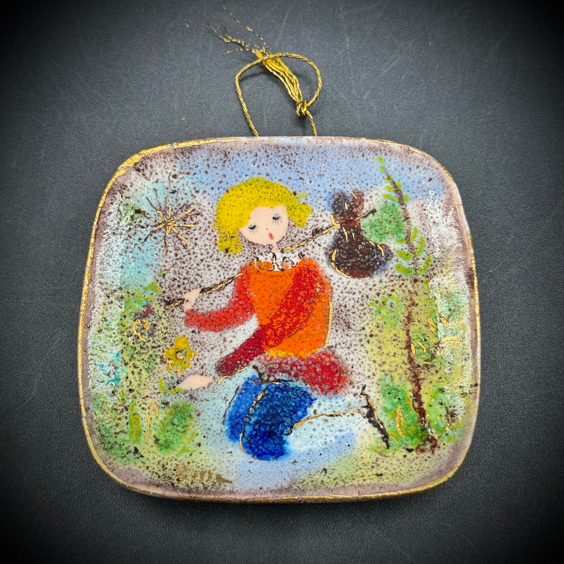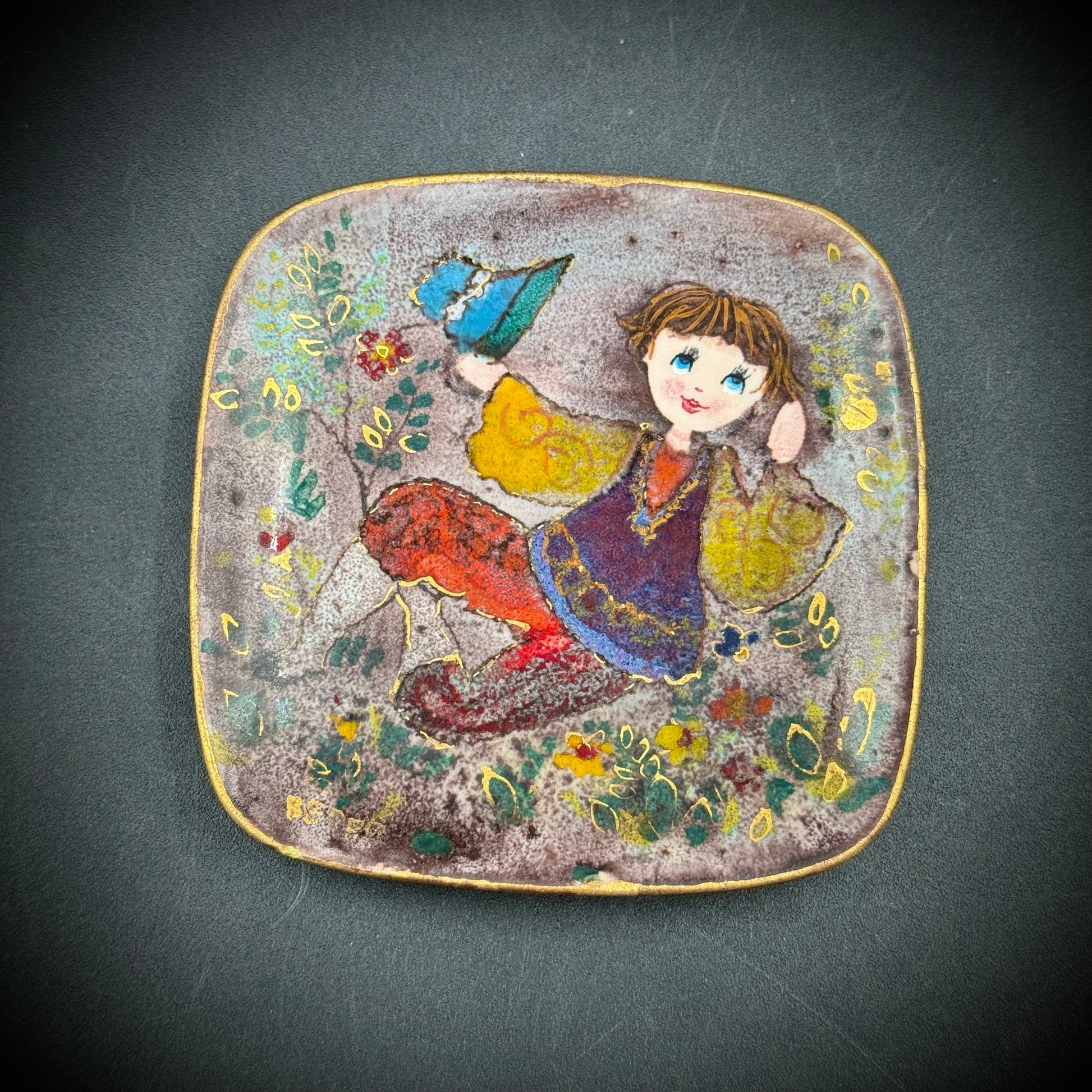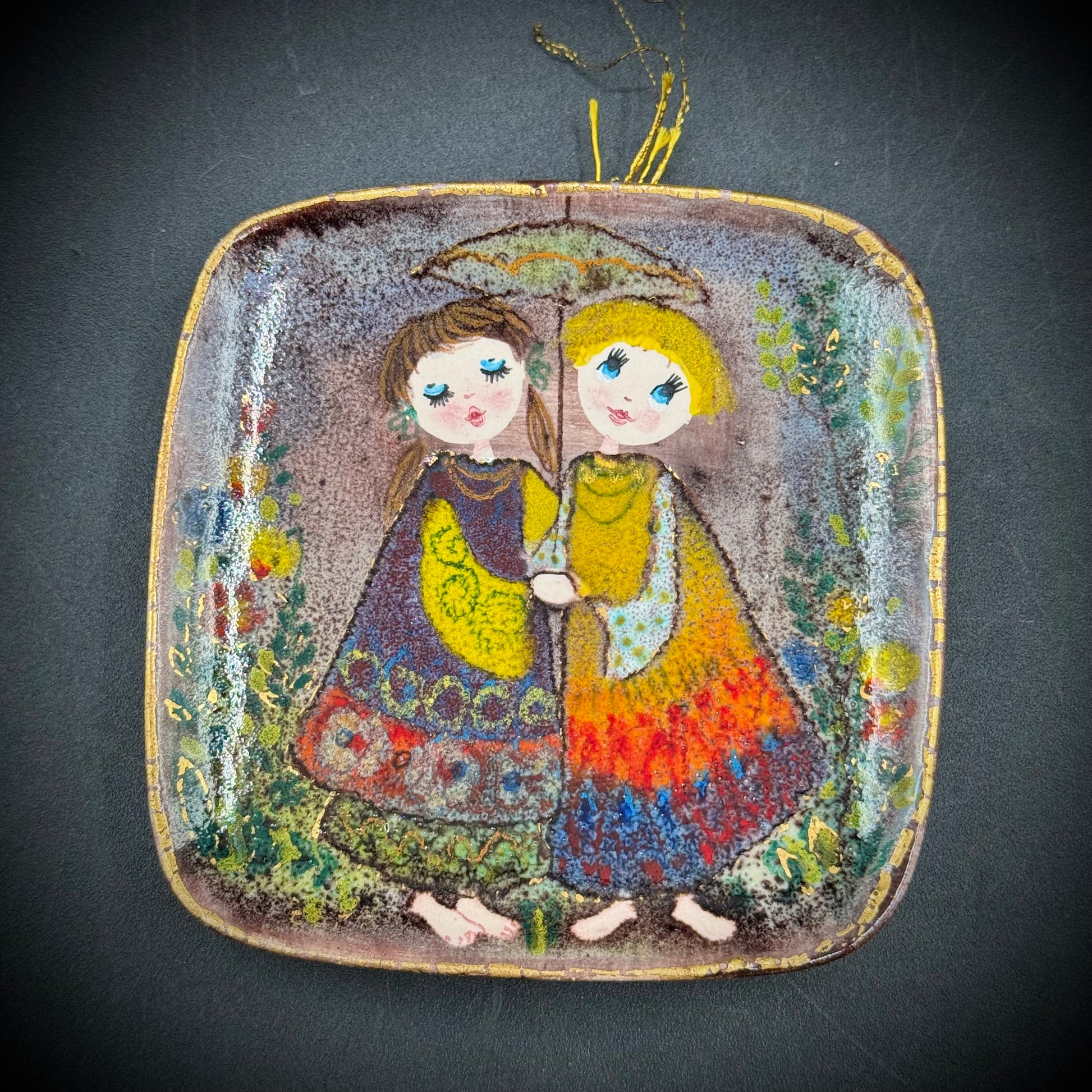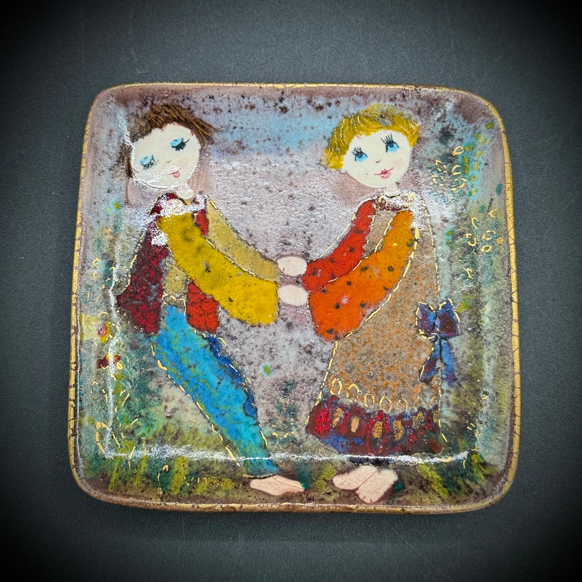 Set of 5 Vintage Ker-Vitrex German Hand Painted Enamel Dishes