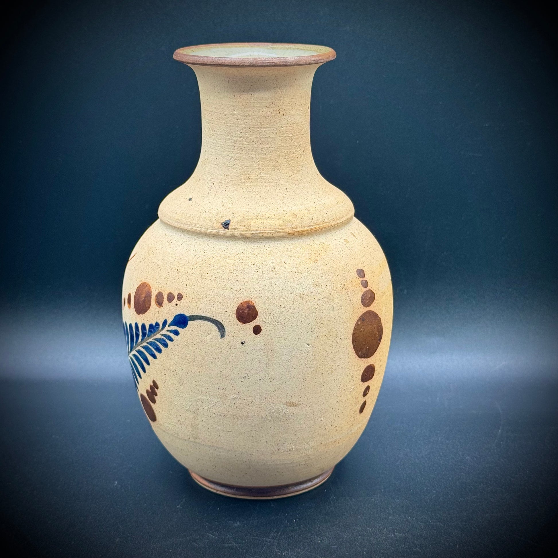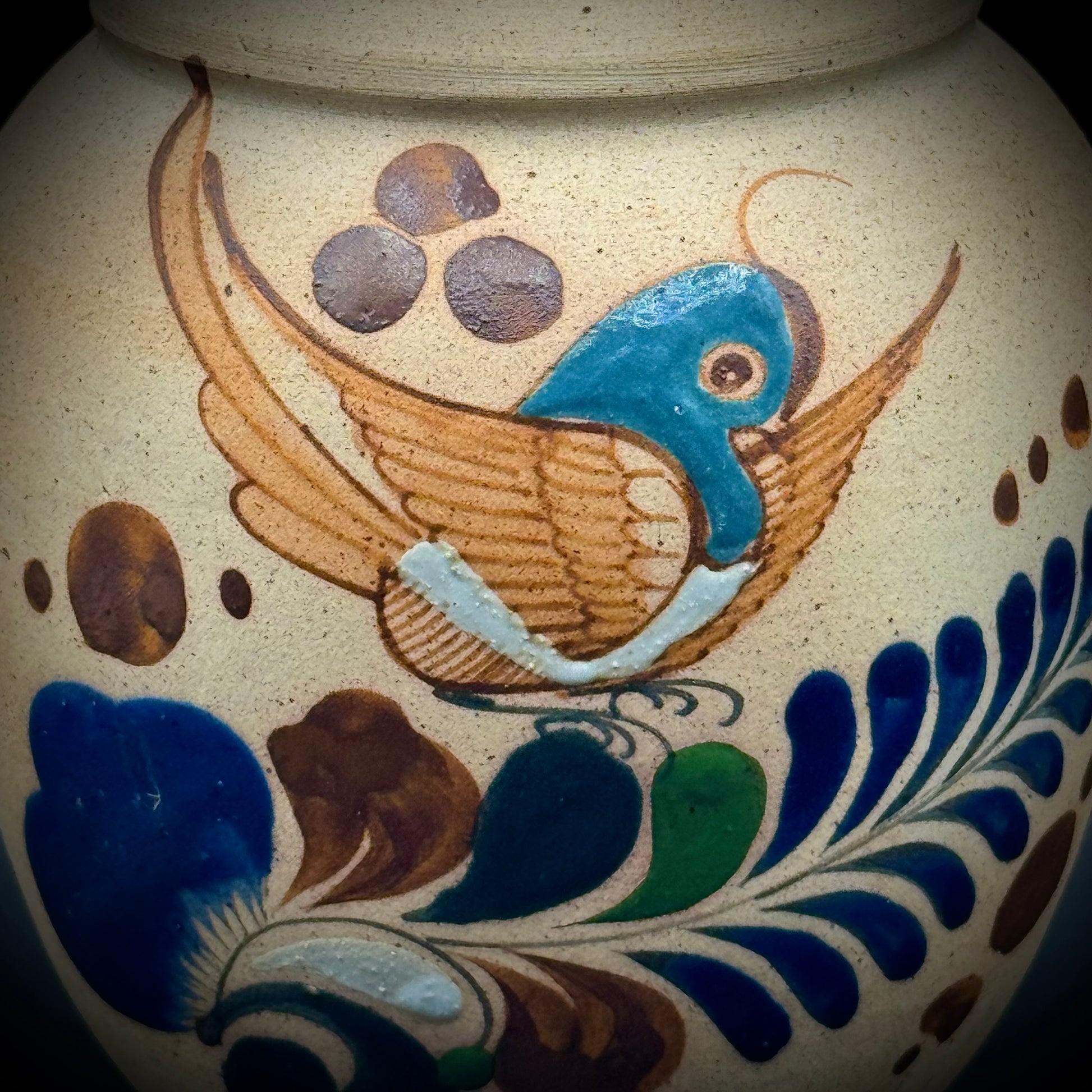 Signed Mexico Tonala Style Bird & Flower Motif Pottery Vase