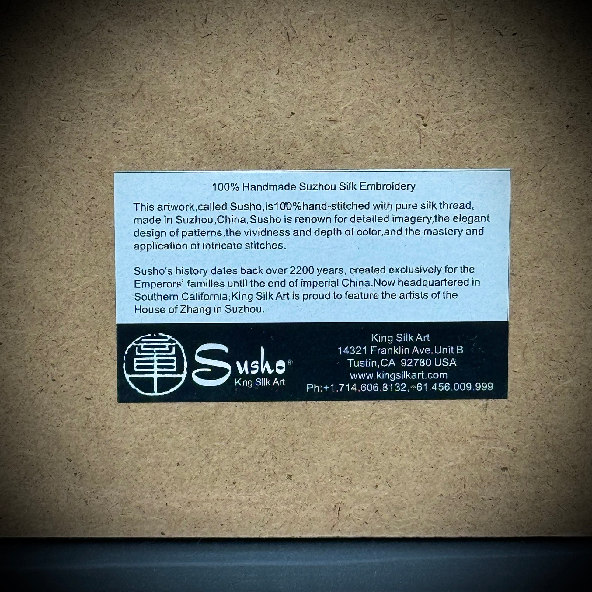 Beautiful bird art, completely stitched by hand in Susho style from The Suzhao region of China and following in a tradition 2,200 years old.