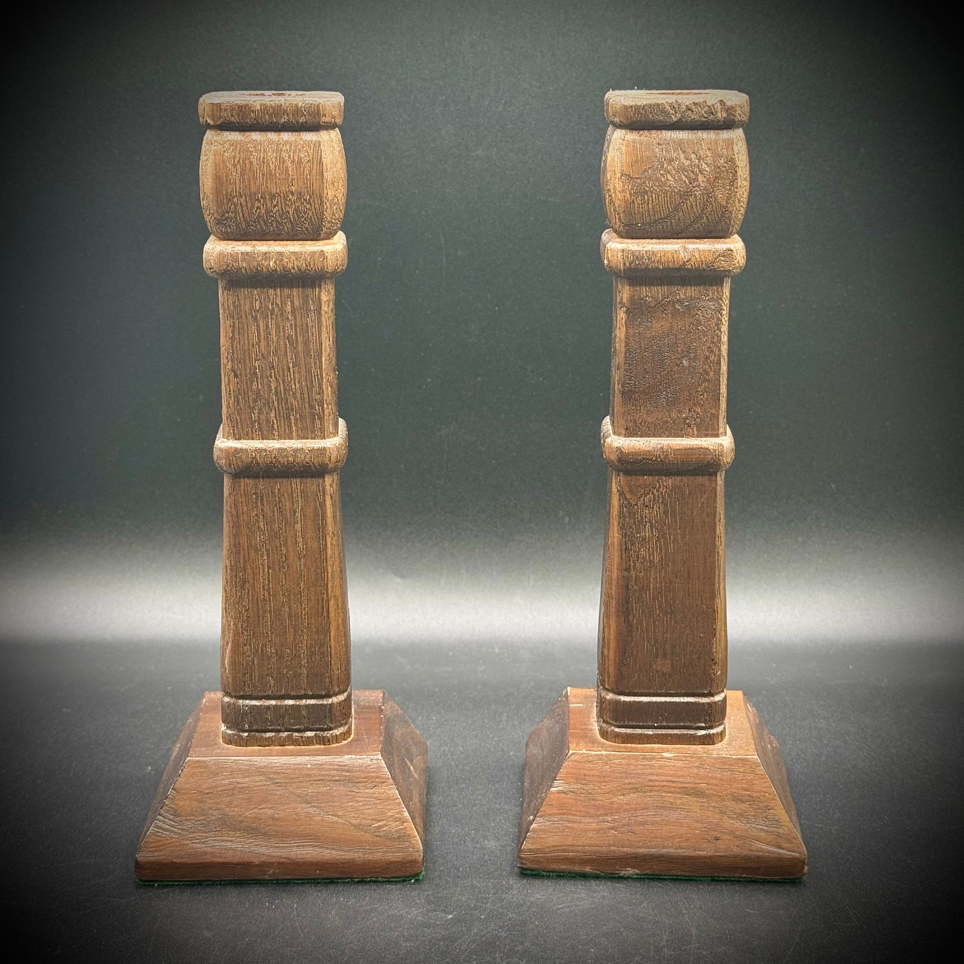 These hand carved candlesticks look like they came right out of a medieval castle.