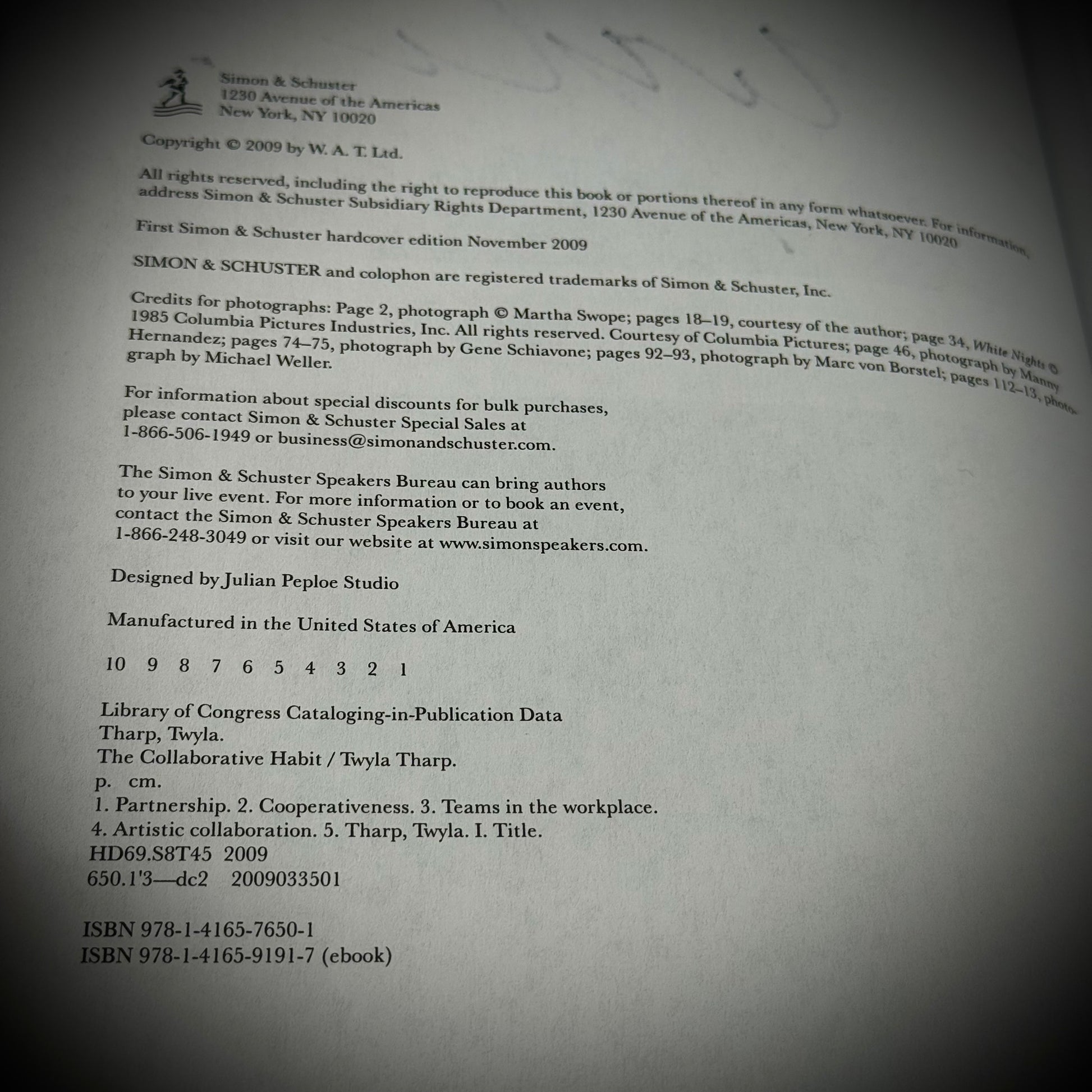 Twyla Tharp Autographed Book "The Collaborative Habit"