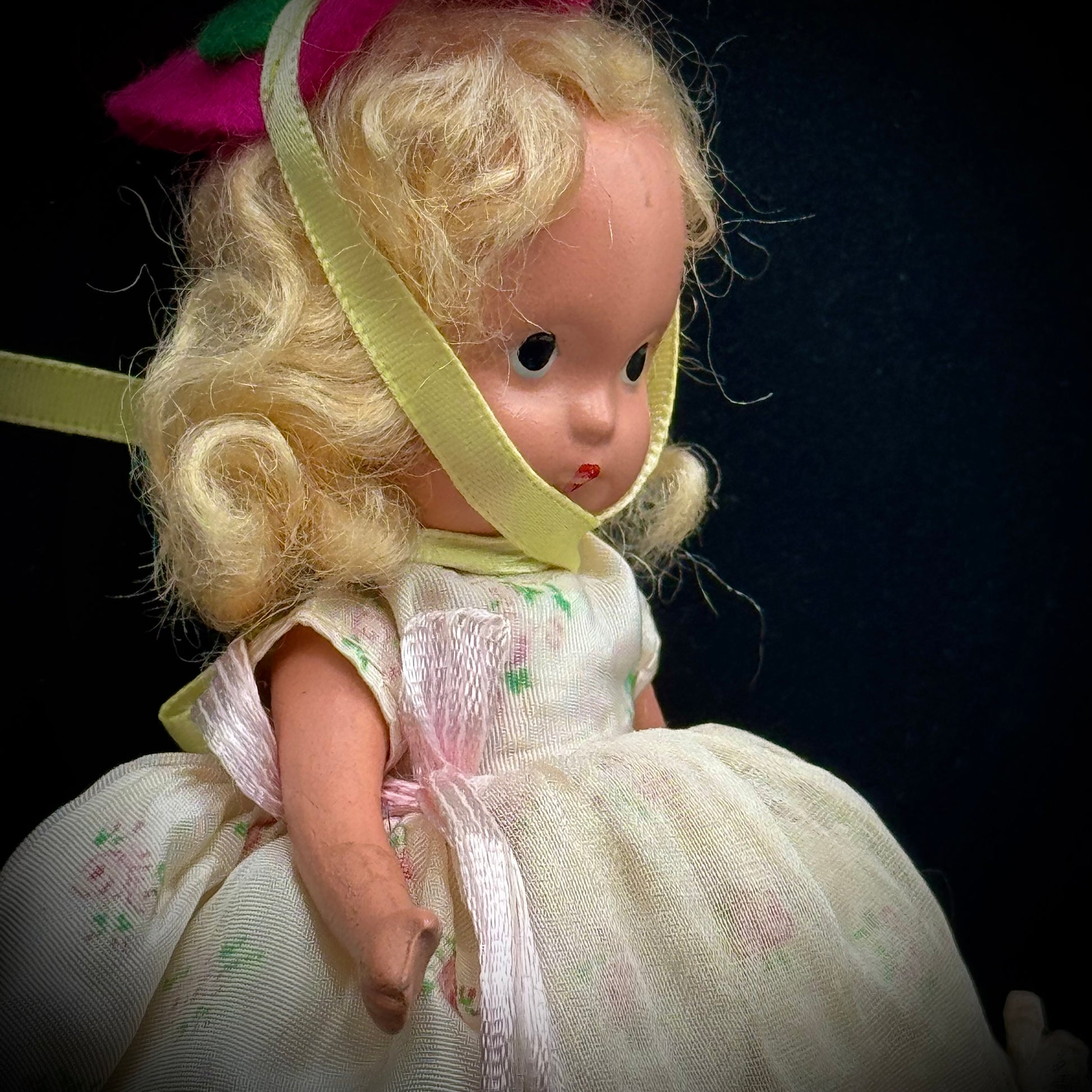 Classic bisque doll by Nancy Ann. This design was produced only between 1936 and 1947. Exhibits the wear expected with a piece of this age.