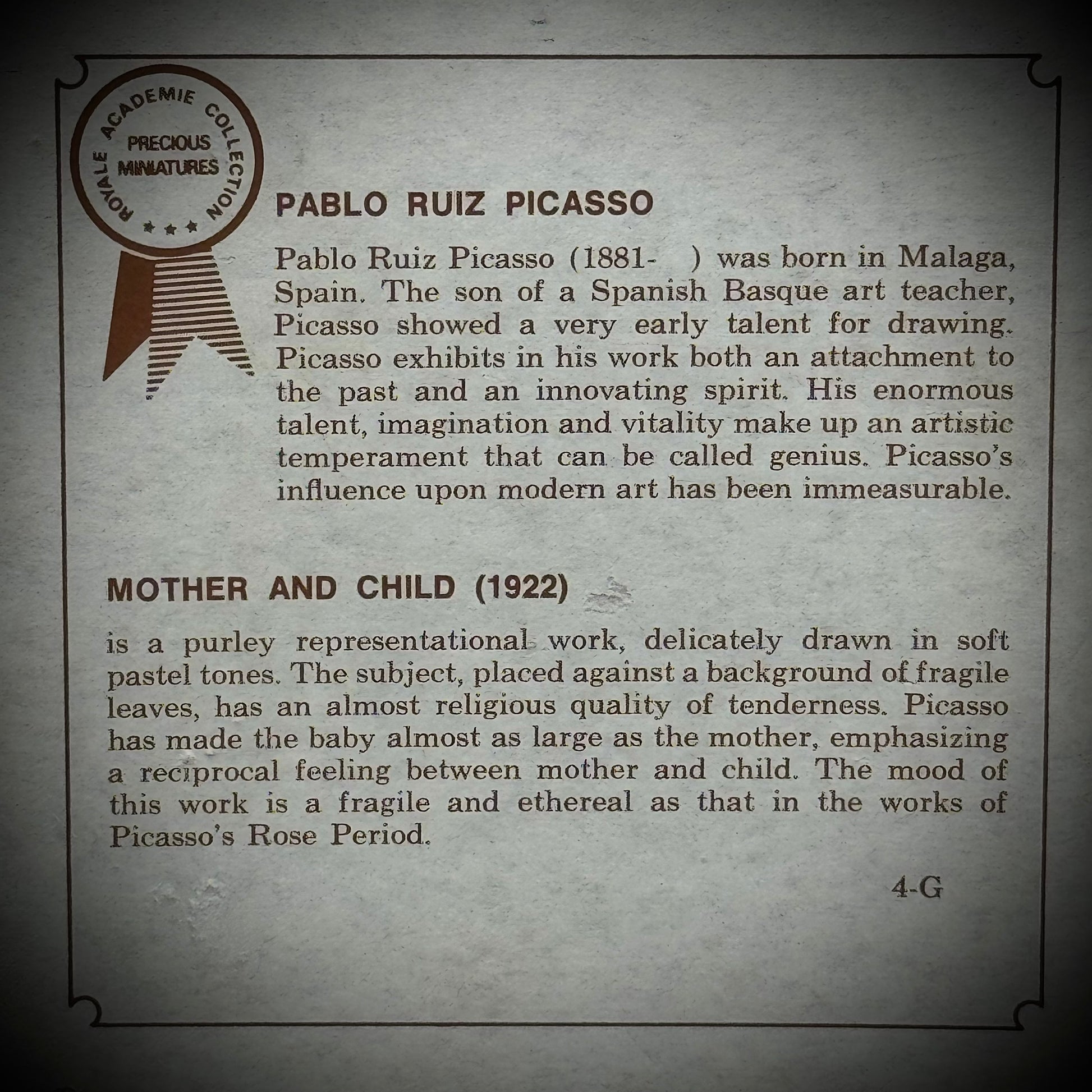 A wonderful print from one of the most iconic names in art history, produced while he was still alive. The Royale Academie Collection of "Precious Miniatures" are a well known and highly collectable series of vintage art prints, with similar examples selling for over $60.00.