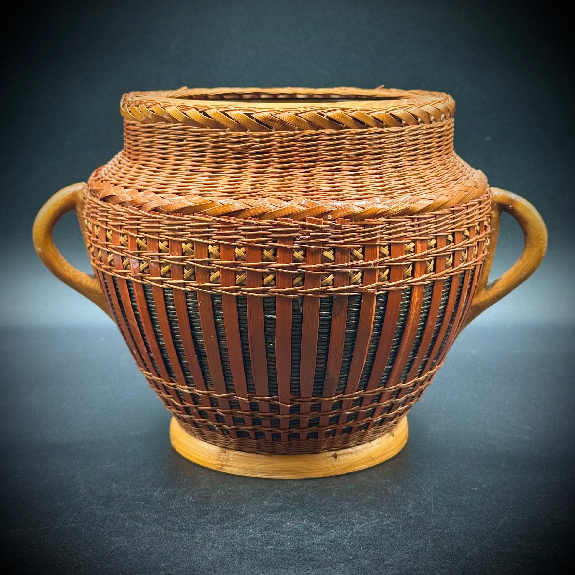 Vintage 1970s Heavy Rattan Basket Planter with Ceramic Insert