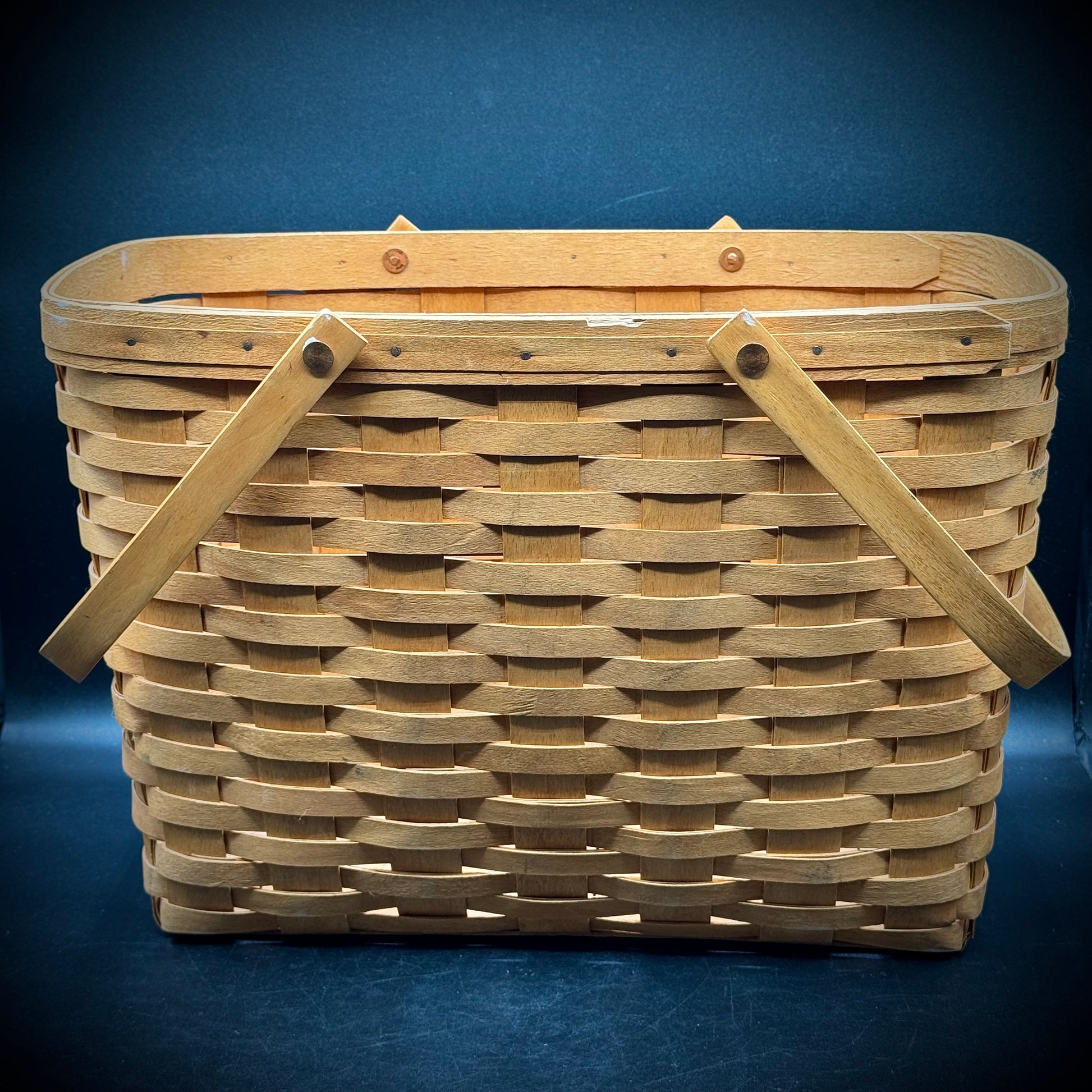 Vintage 1994 Large Longaberger Handled Market Basket with Copper Buttons