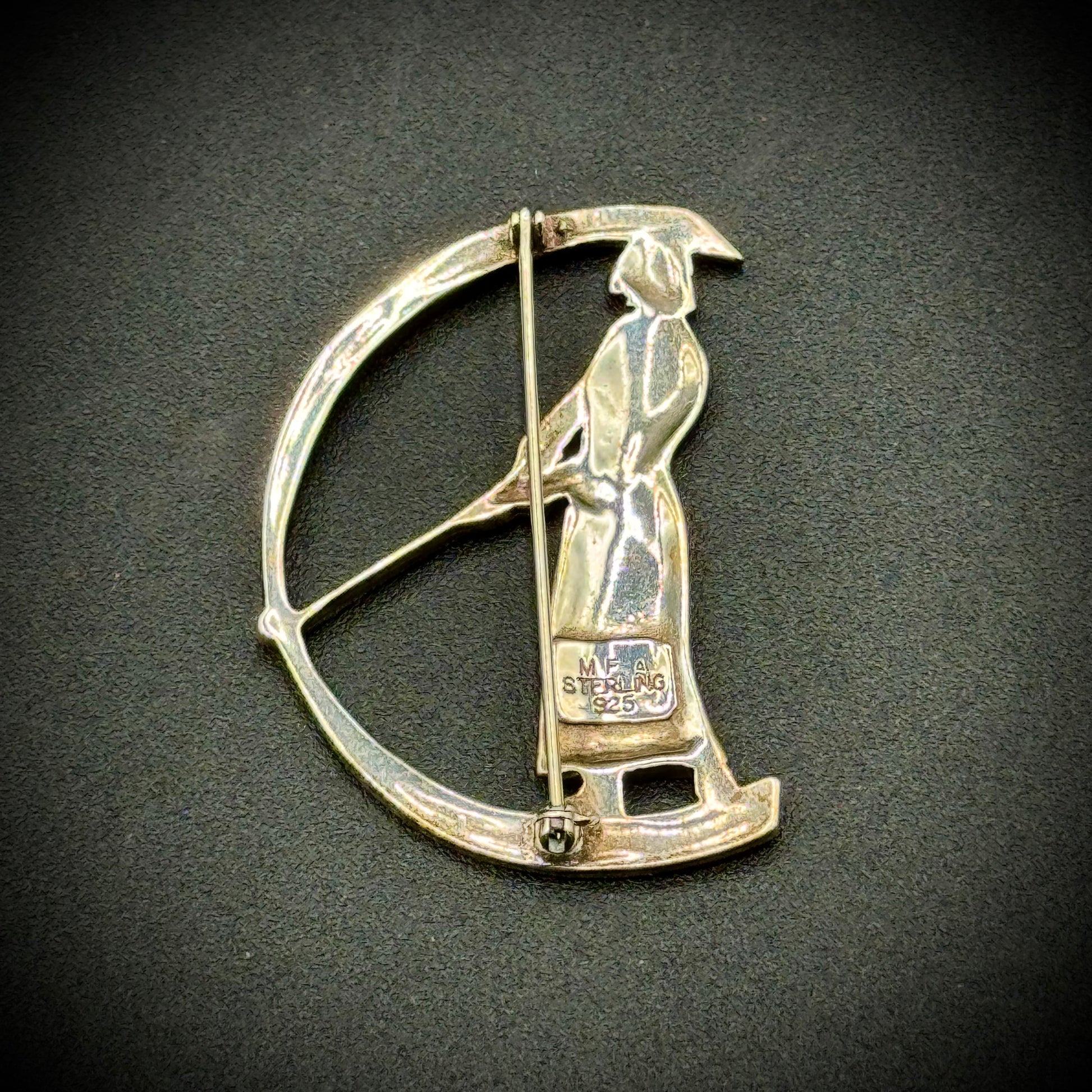 Vintage Art Nouveau MFA Sterling Silver Female Golfer Pin/Brooch