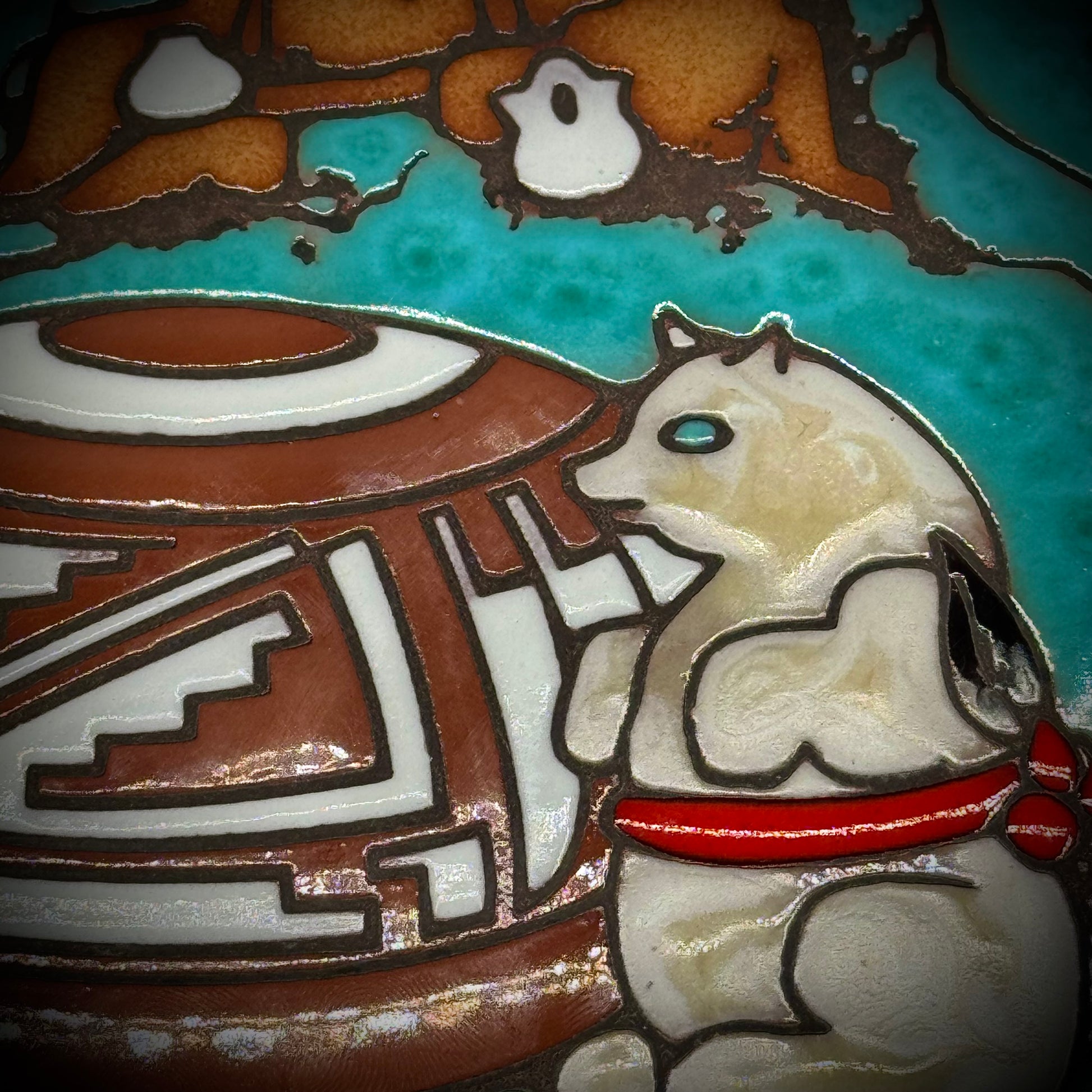 Vintage Artist Cleo Teissedre Native American Style Bear Pottery Tile/Trivet