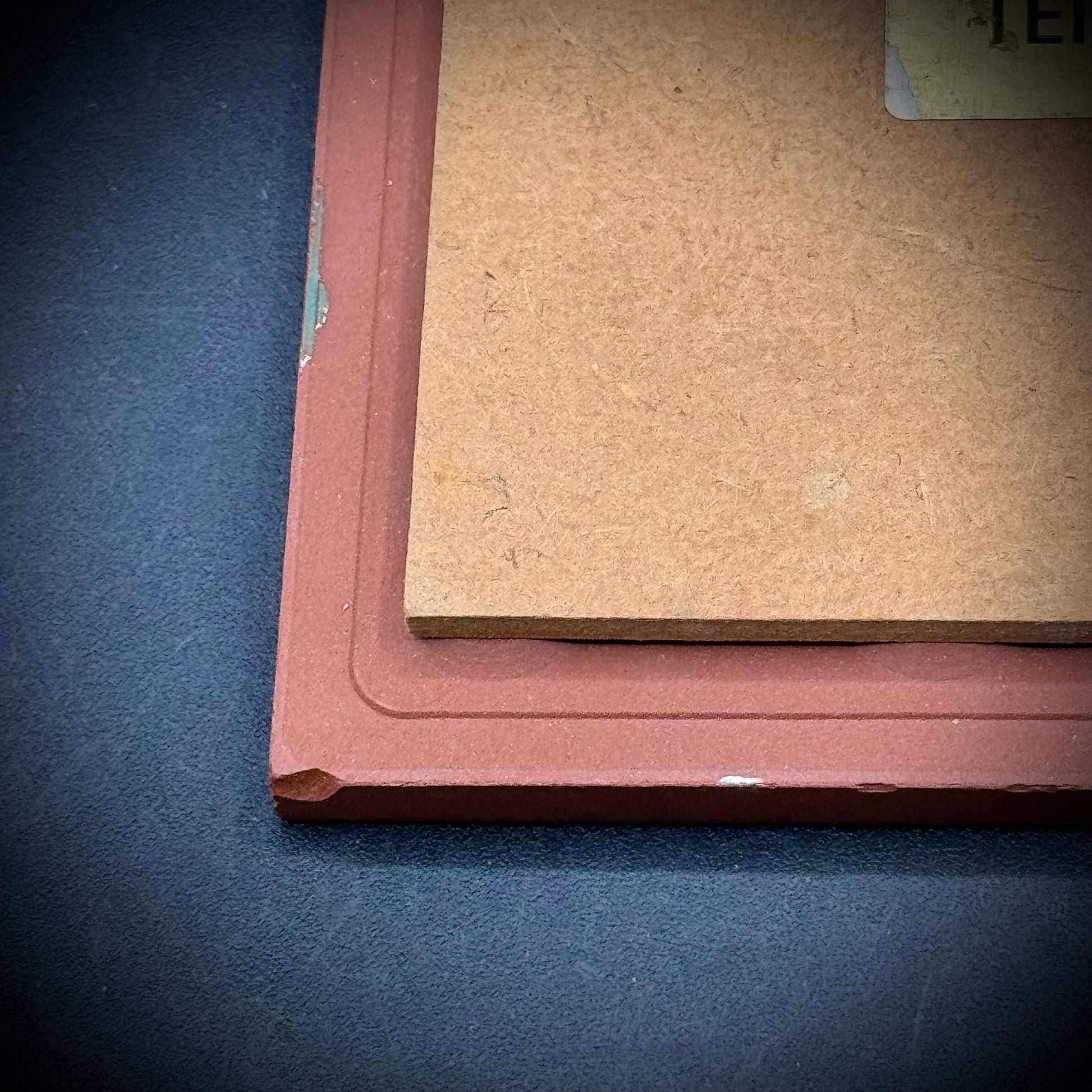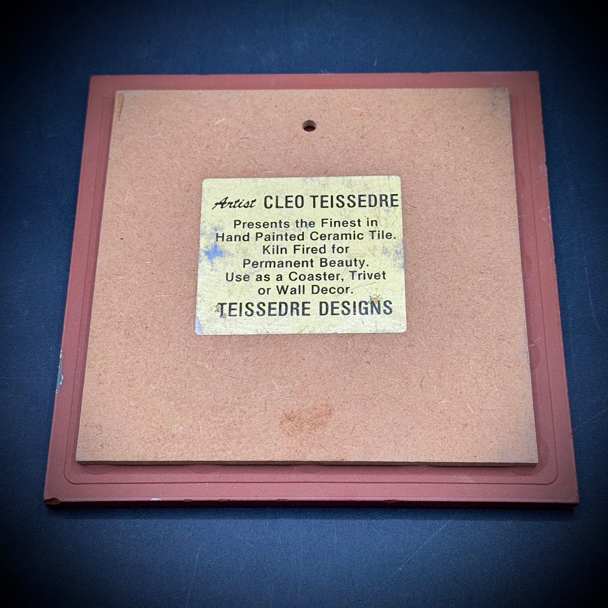 Measures 6" by 6" with artist label on the back. Please note: There is a very small chip on one bottom corner. It is not noticeable when displayed.
