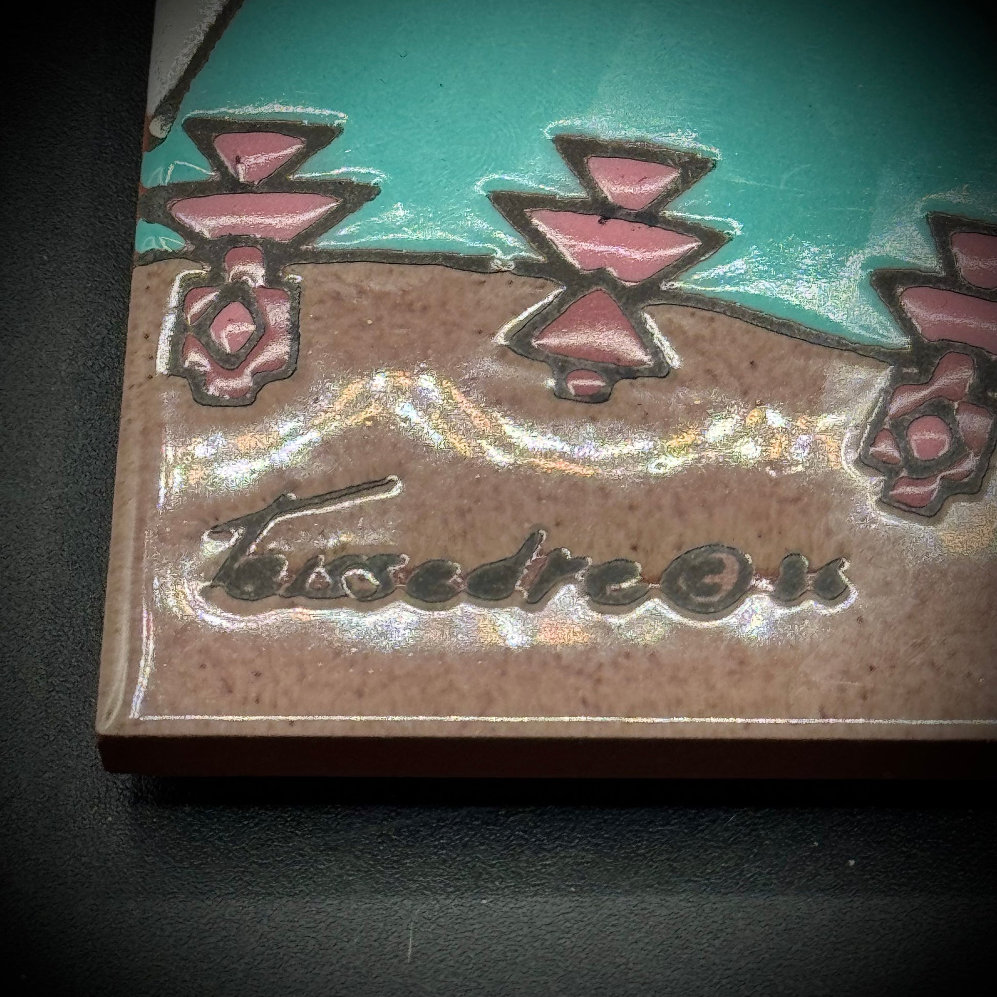 Vintage Artist Cleo Teissedre Native American Style Pueblo Pottery Tile/Trivet