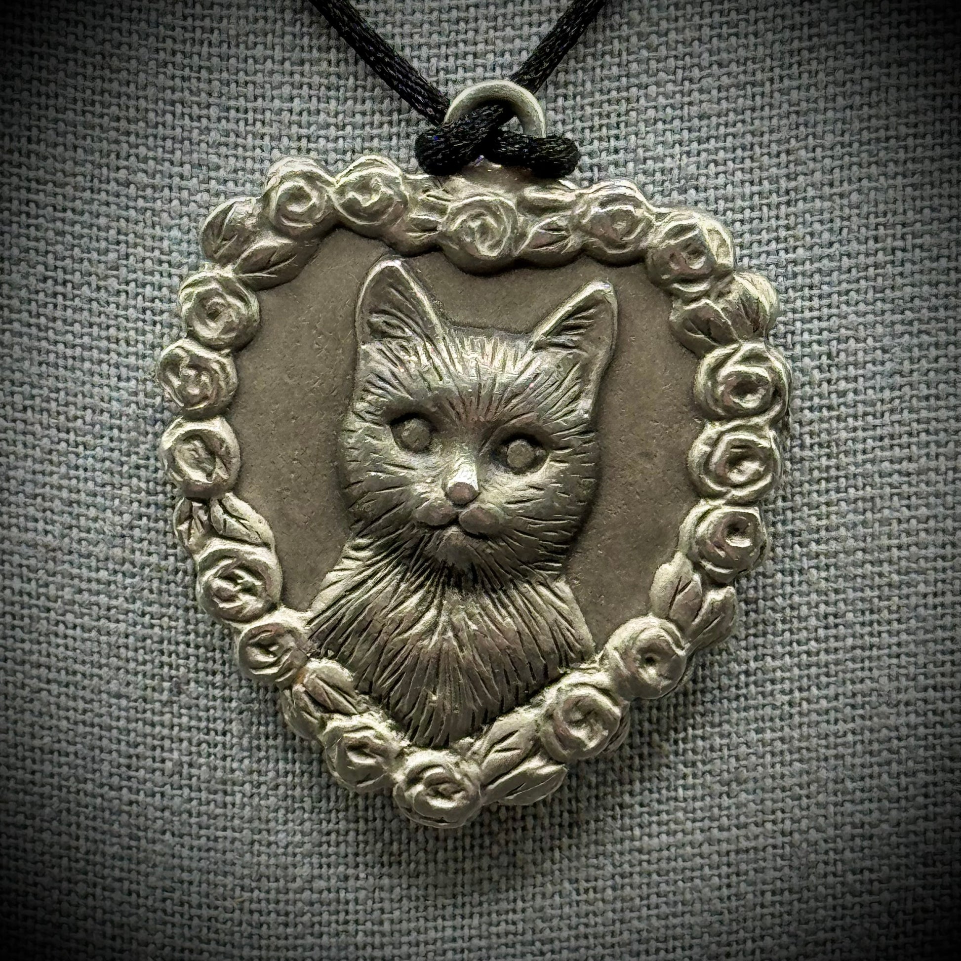 Vintage Avon Pewter Cat/Heart Pendant