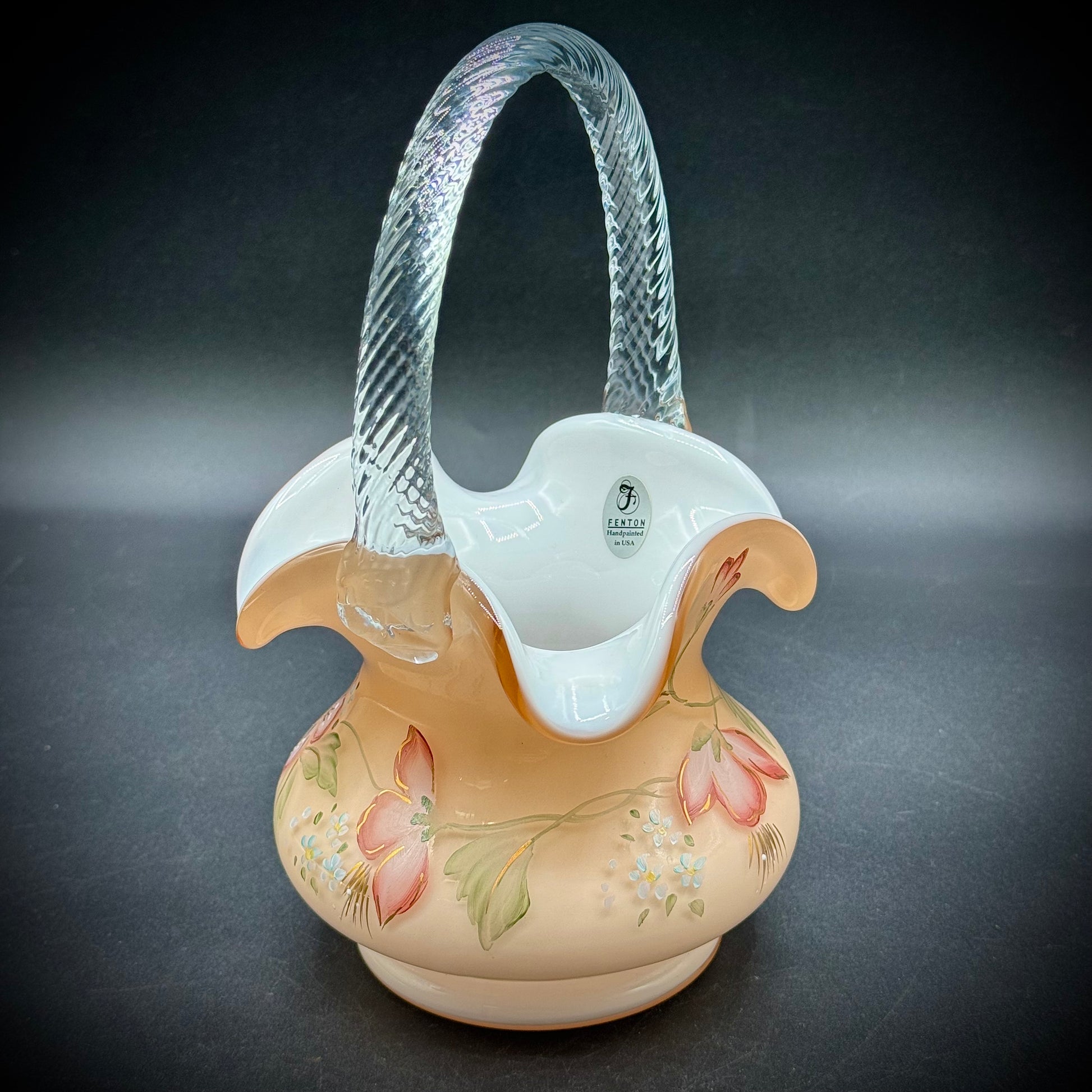 Vintage Fenton 2001 Designer Showcase Sunset Overlay Basket - Signed by Bill Fenton