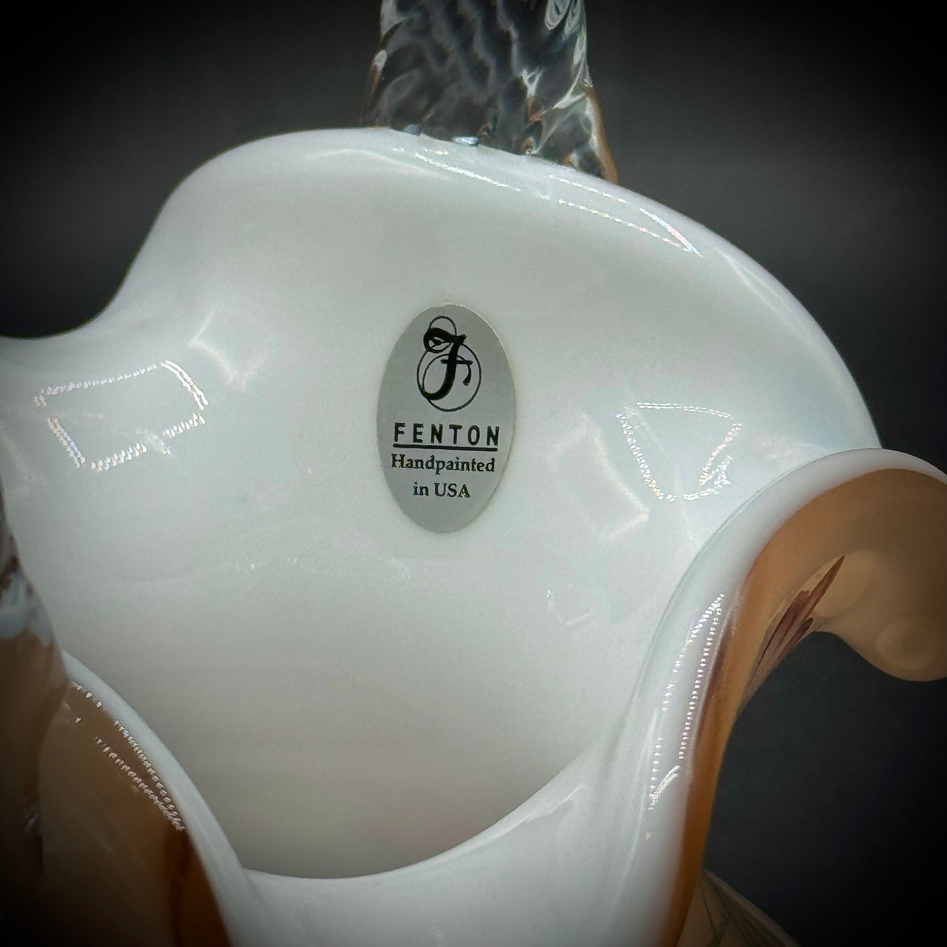 One of the most beautiful pieces of Fenton we have ever seen! Exquisitely painted and hand signed by Bill Fenton on the bottom, just one year before his passing.