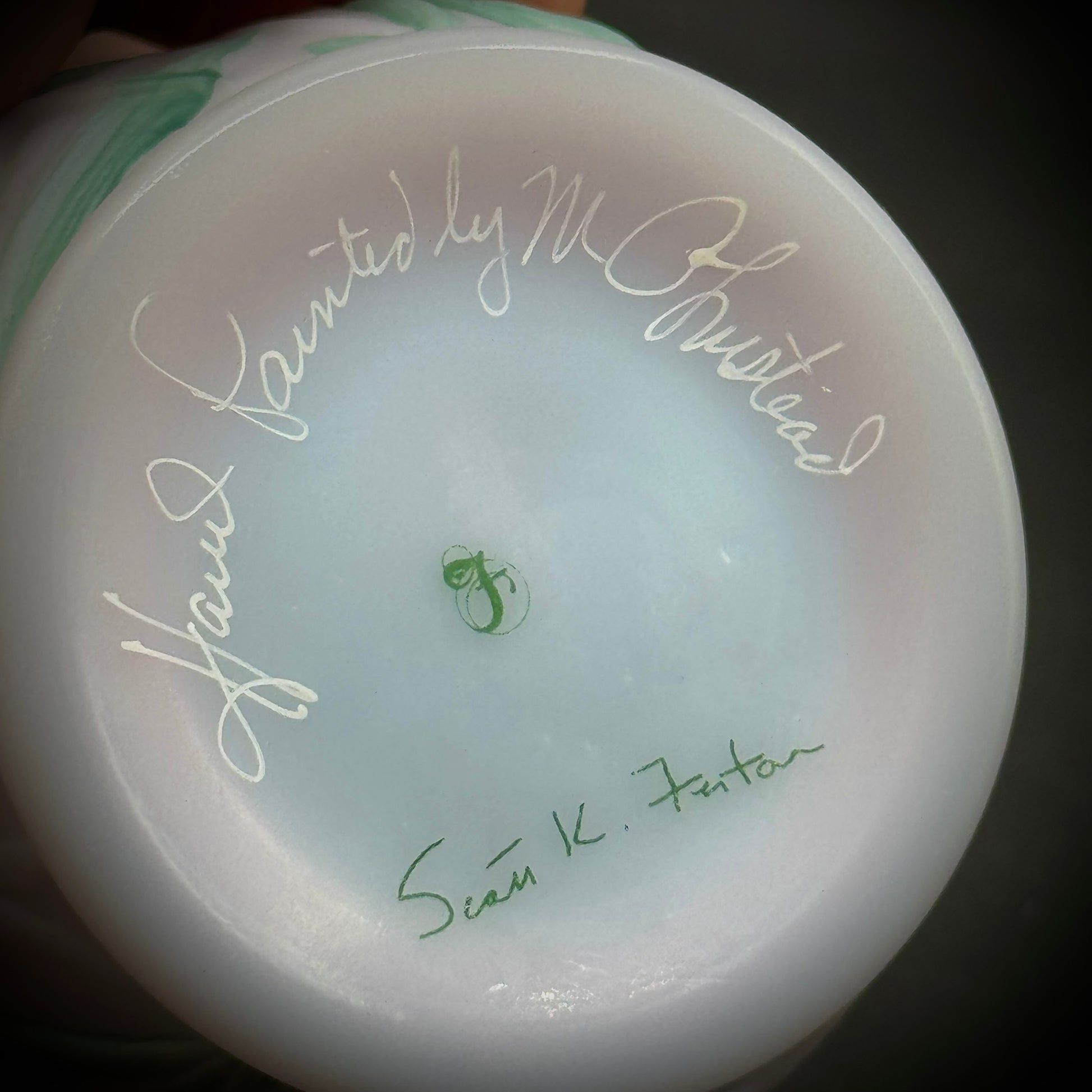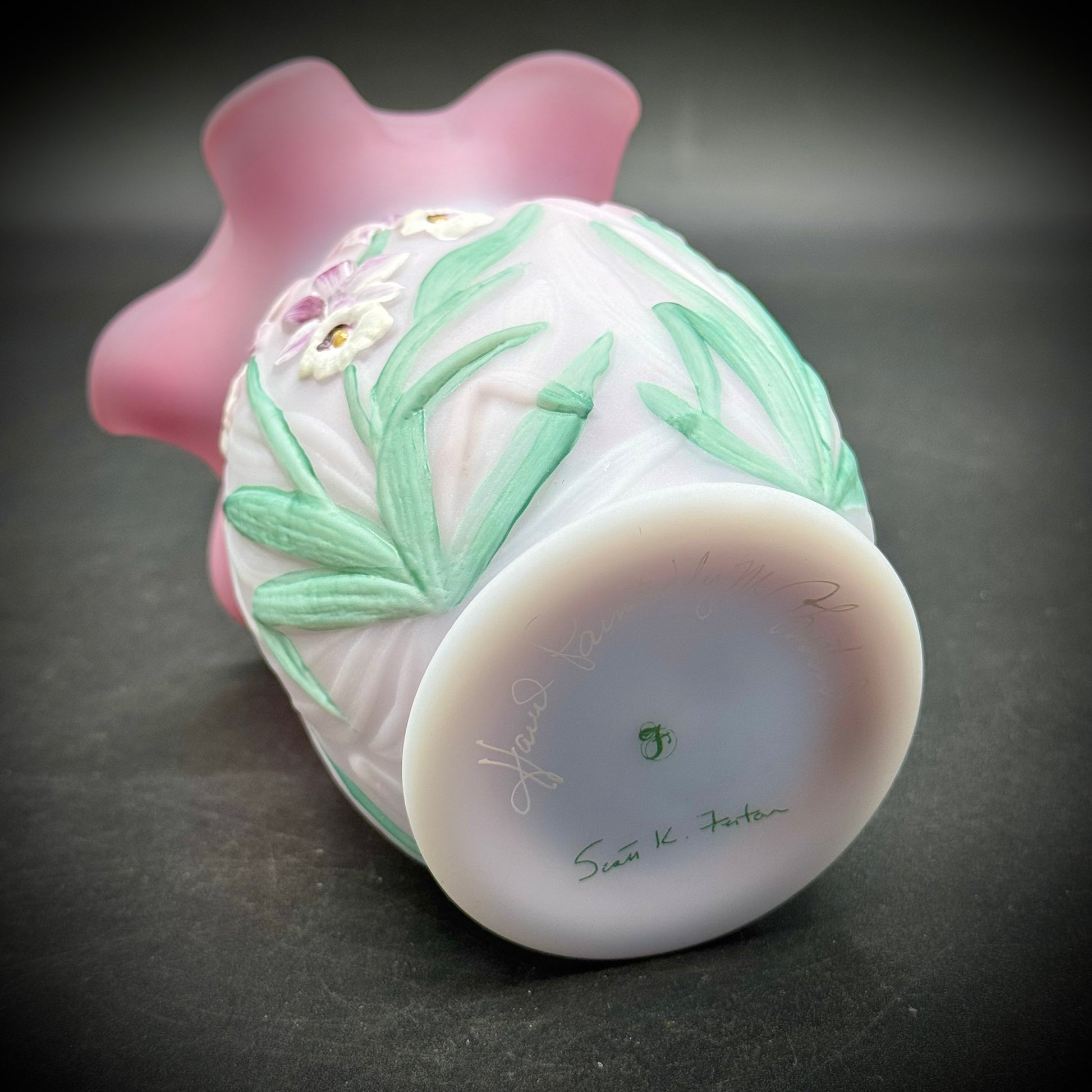 This is one of the true stunners! This gorgeous vase features high relief, exquisite hand painting and is hand signed on the bottom by Sean Fenton, celebrating the storied company's 95th Anniversary.