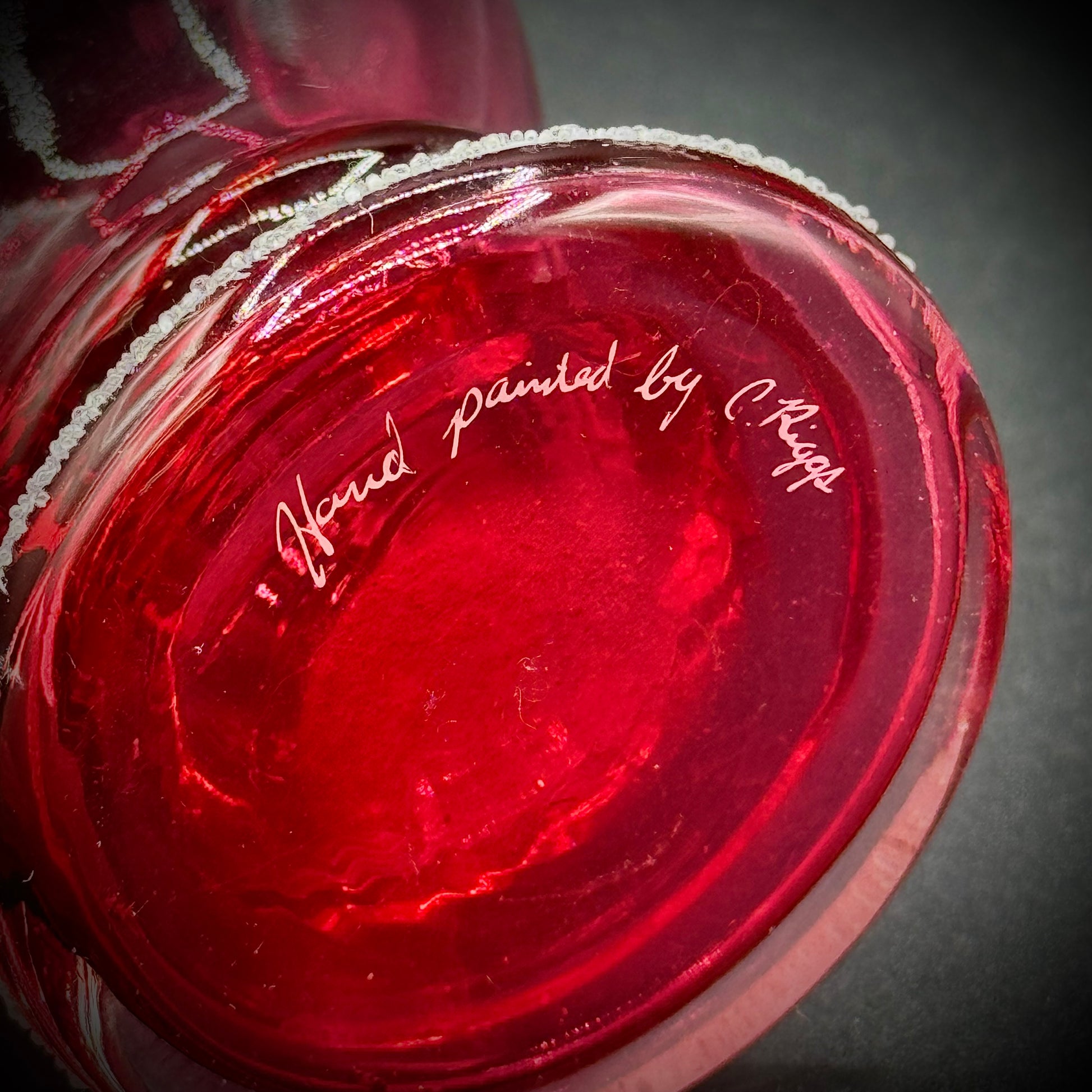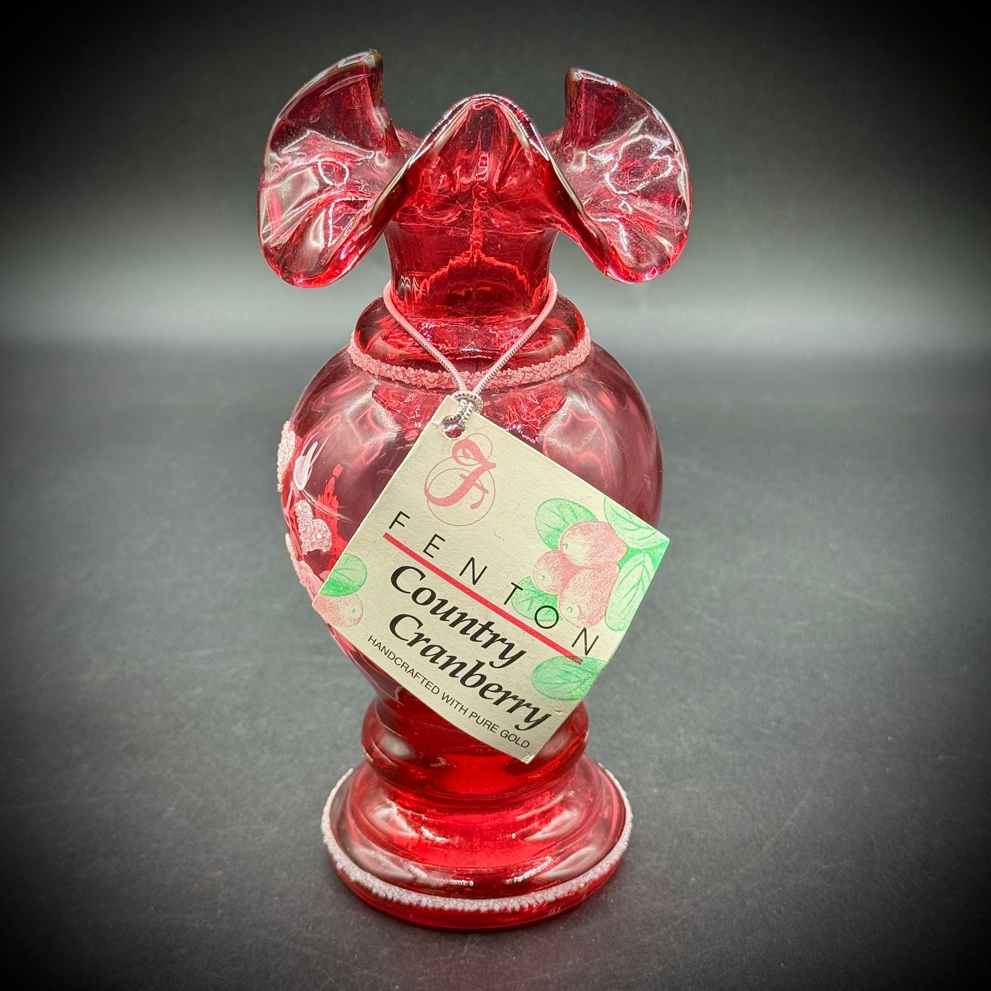 Vintage Fenton Country Cranberry Hearts & Flowers Vase Crafted with Pure Gold