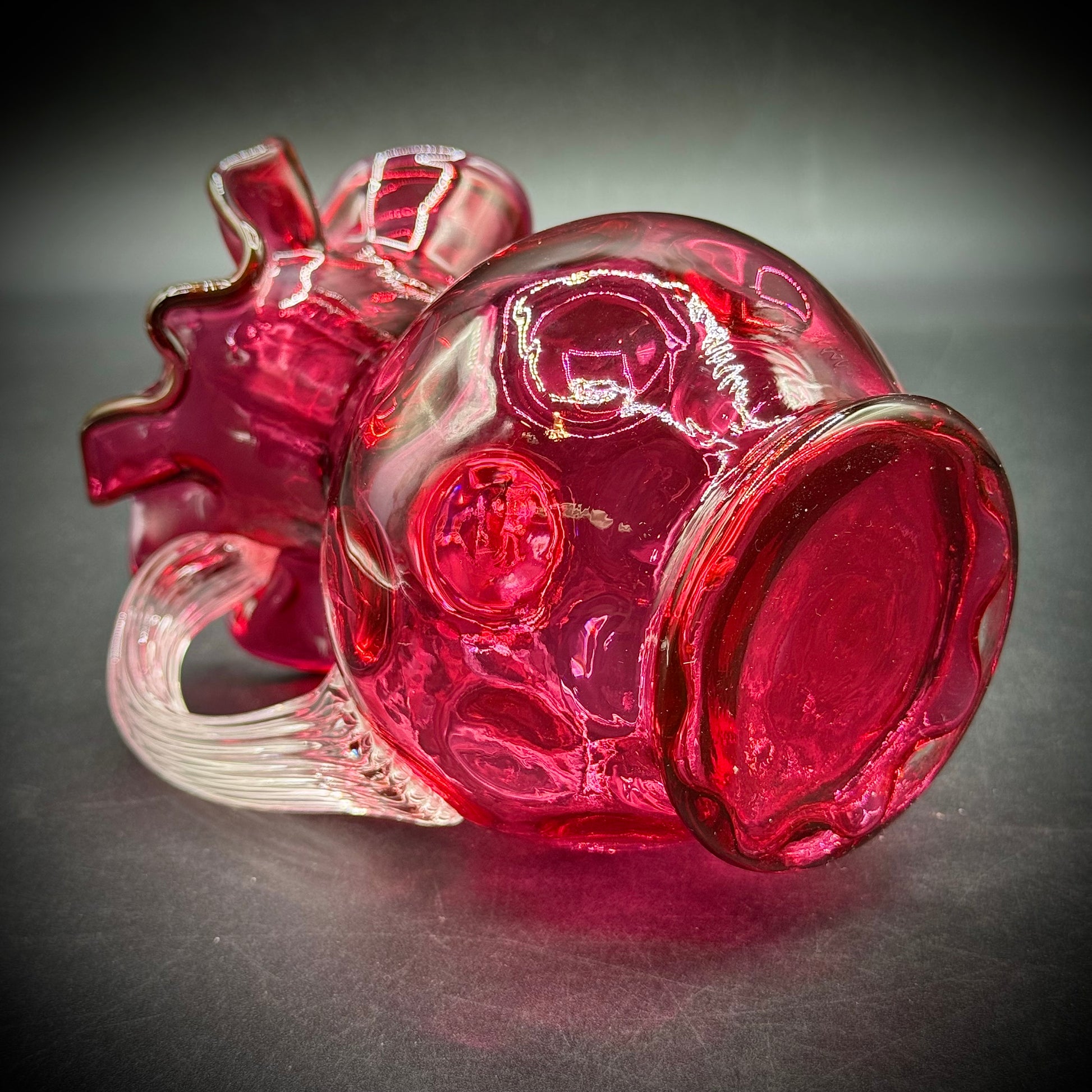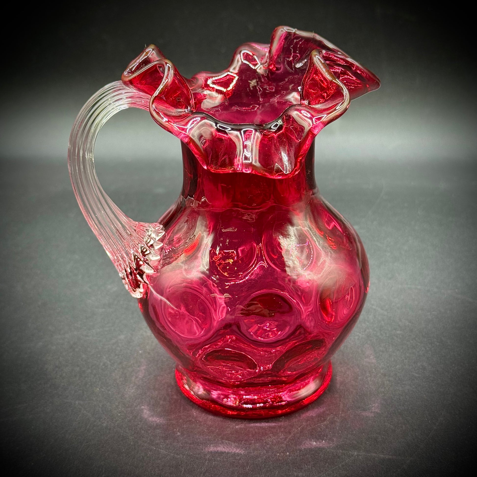Vintage Fenton Cranberry Glass Coin Dot Pattern Ruffle Pitcher