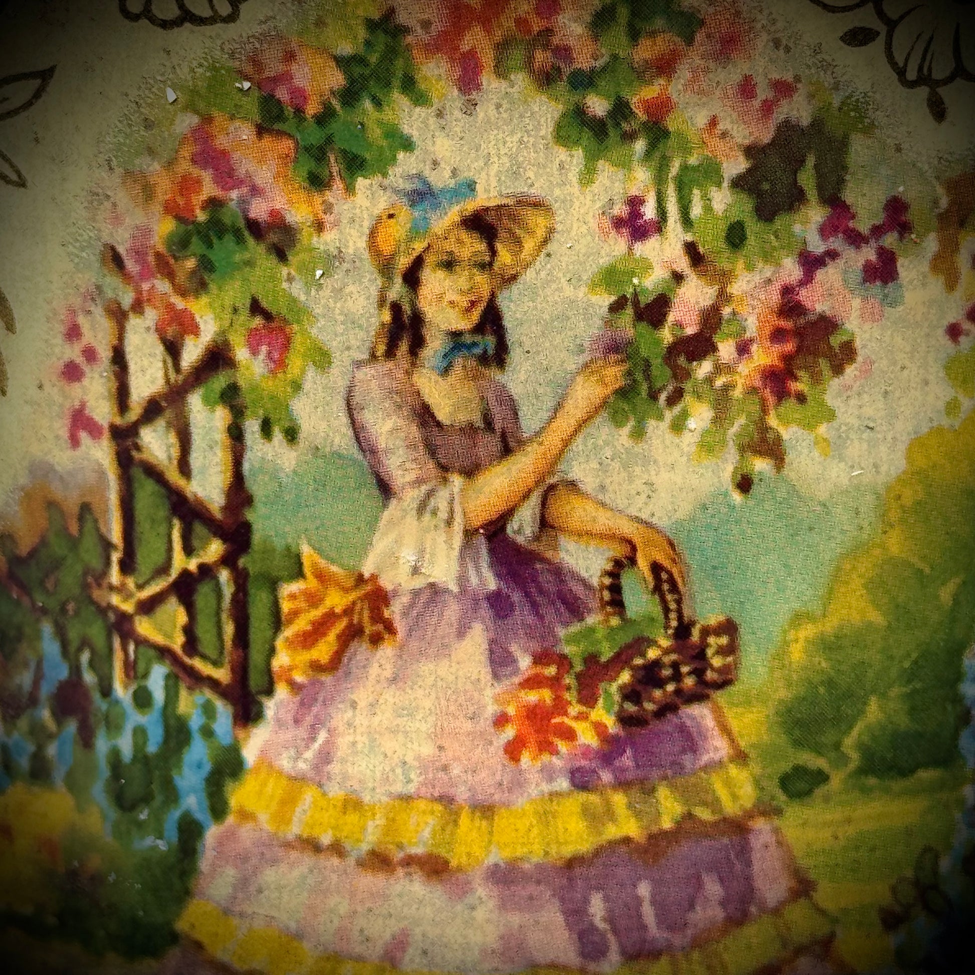 Vintage Floral and Victorian Woman Motif Tin - Made in England