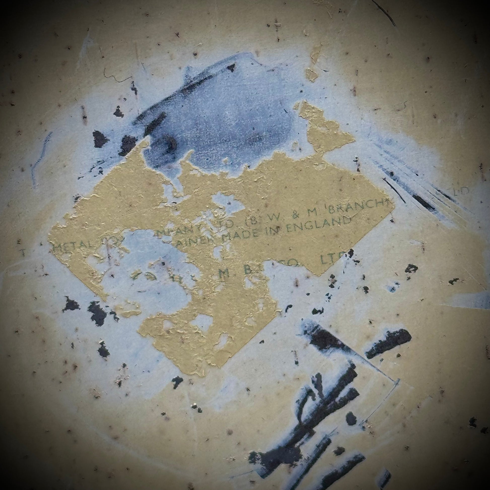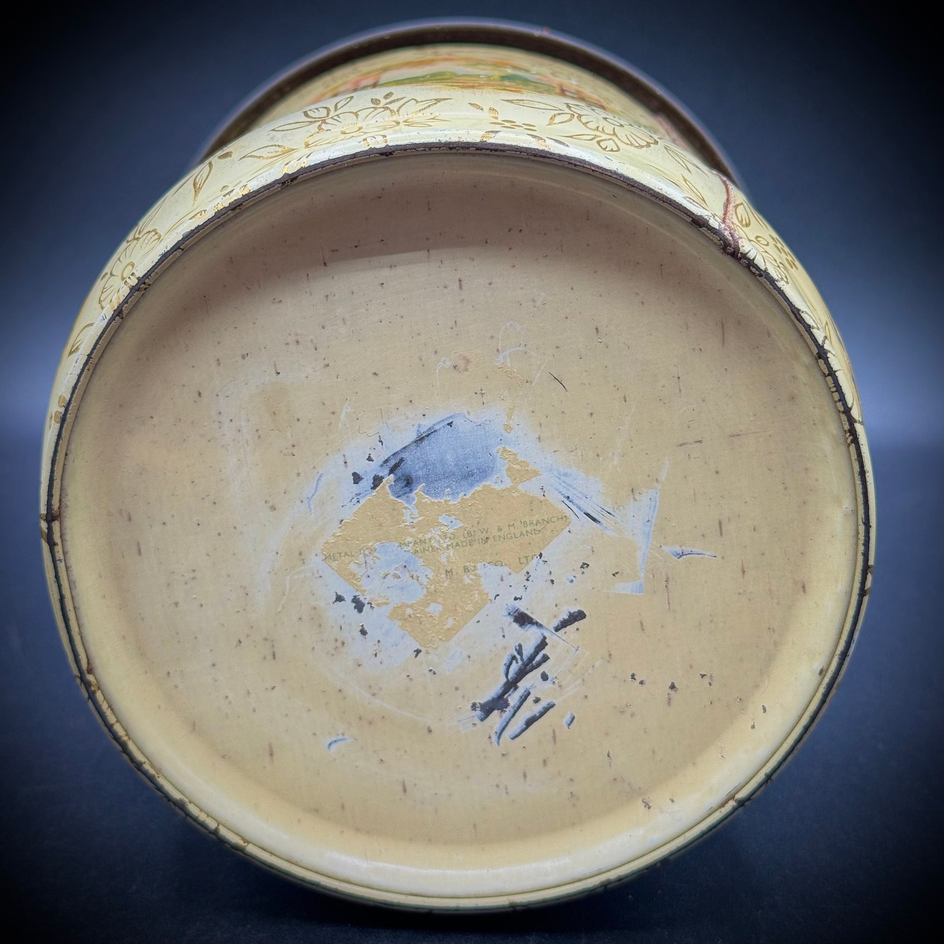 Beautiful transfer and so much detail on this true vintage lidded tin, made in England.
