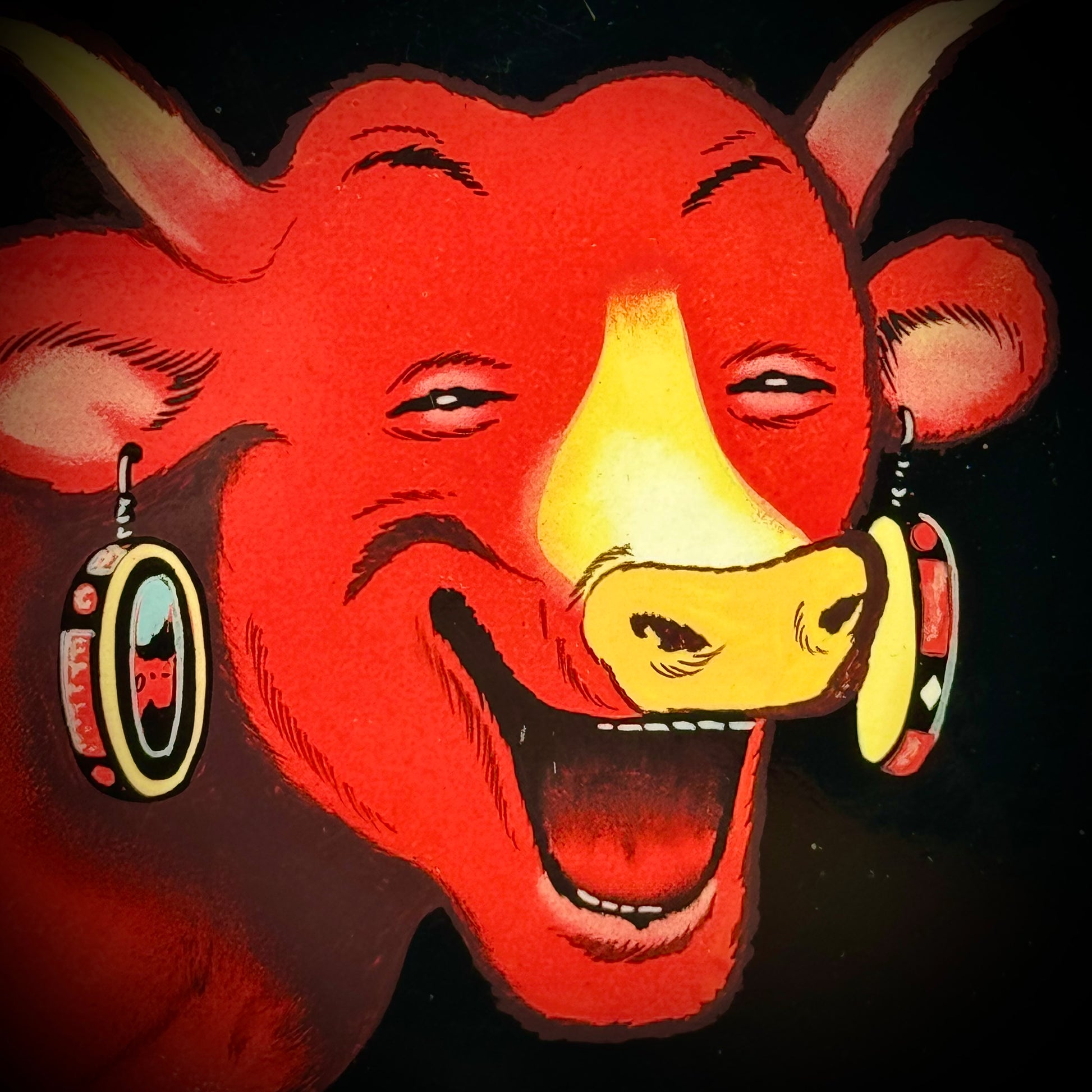 Vintage French Cow & Cheese Advertising Art on Lacquered Thick Acrylic