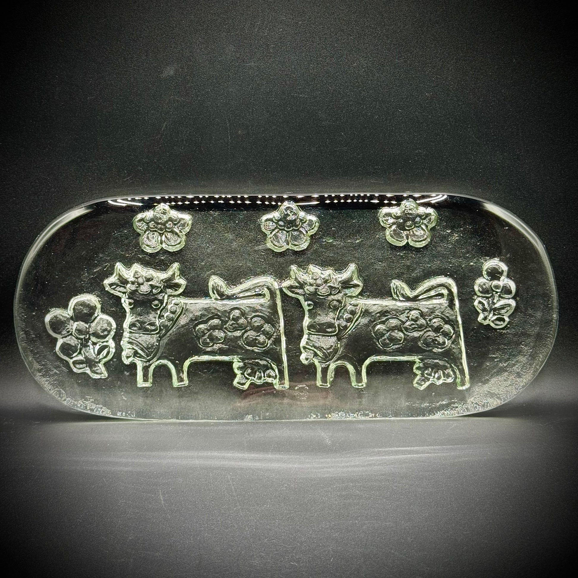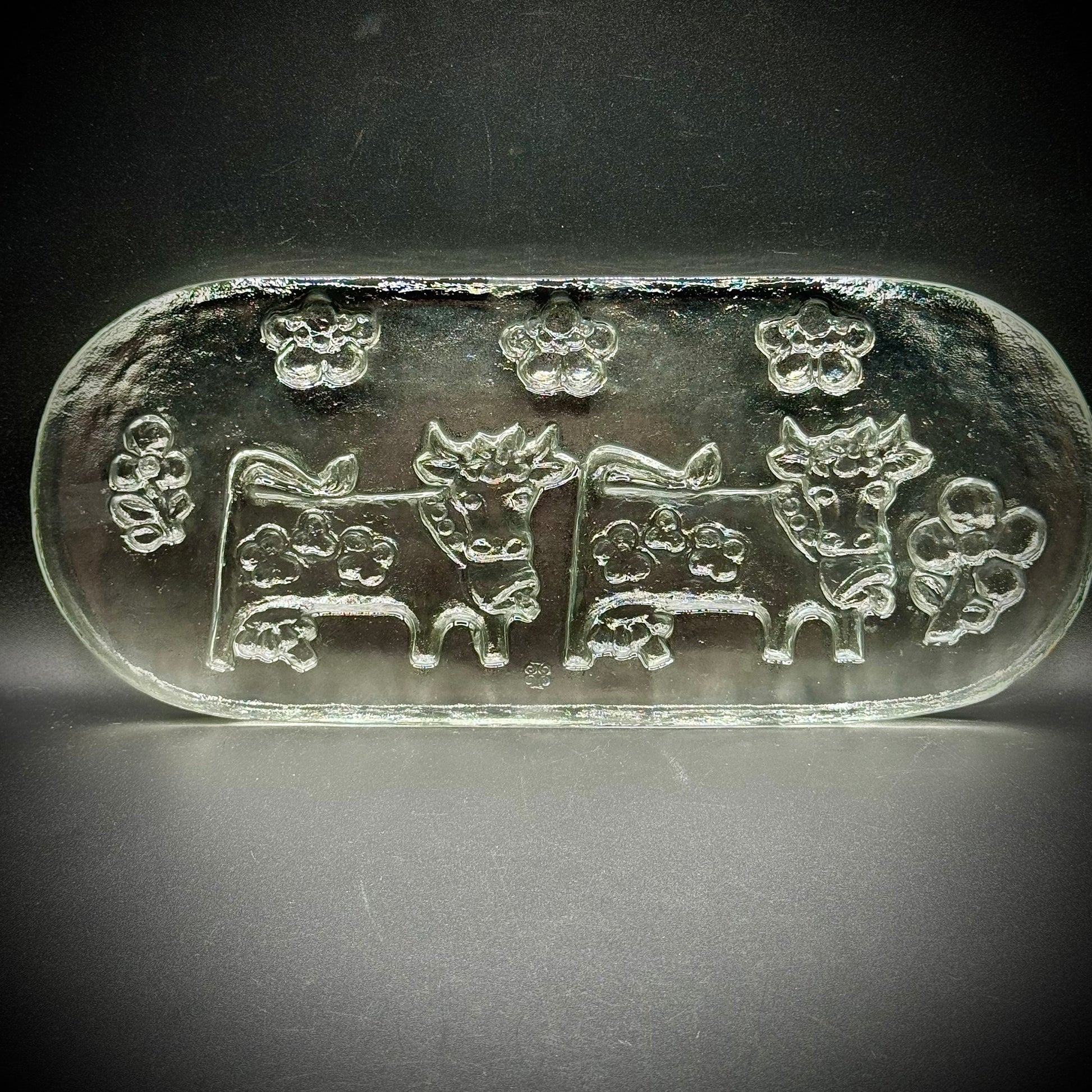 Vintage Glasi Hergiswil Swiss Cow "Olma" Large Cheese Plate