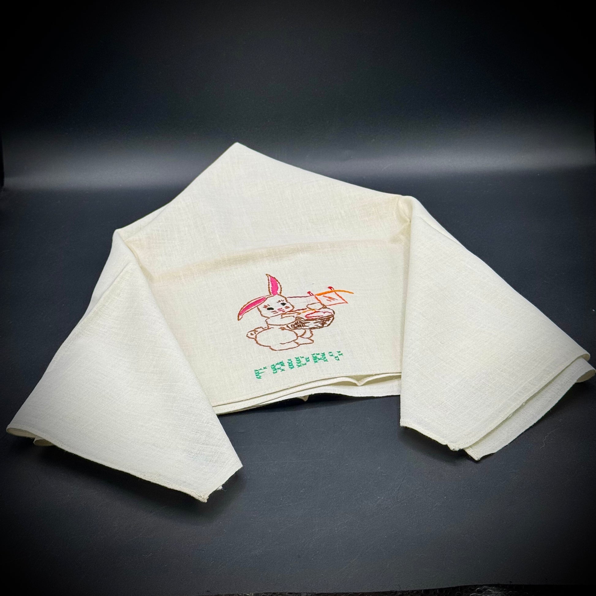 Vintage Hand Embroidered Linen "Friday Bunny" Small Table Cloth