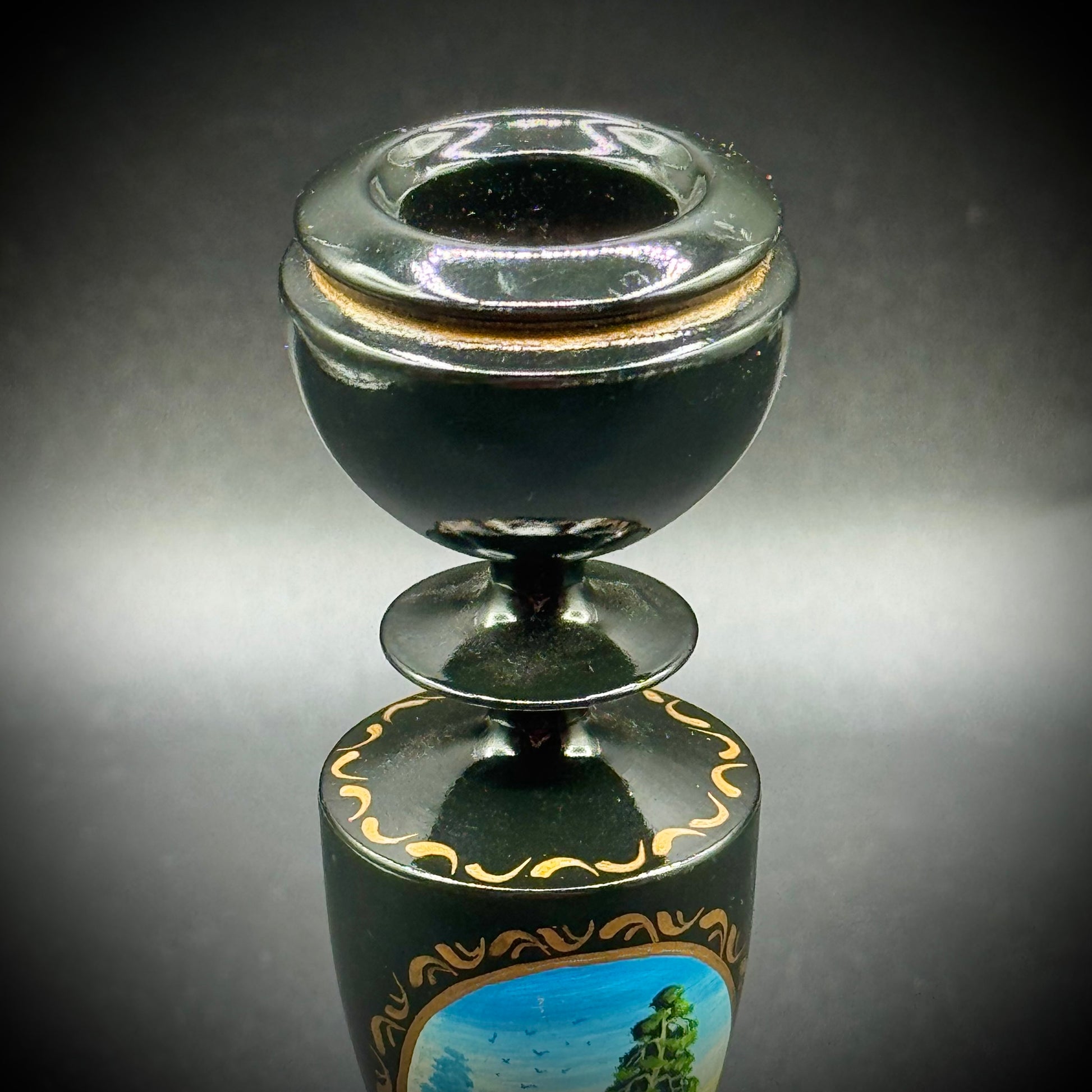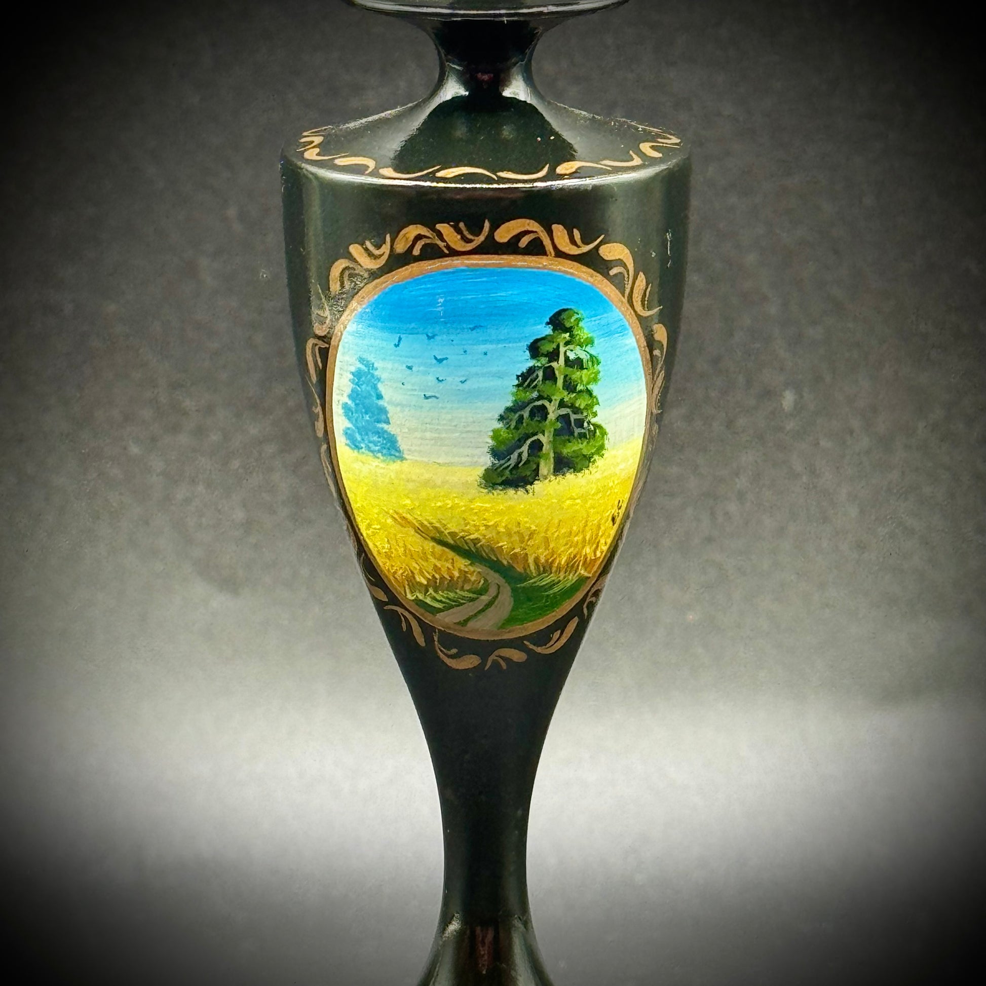 Vintage Hand Painted Black Lacquerware Candlestick