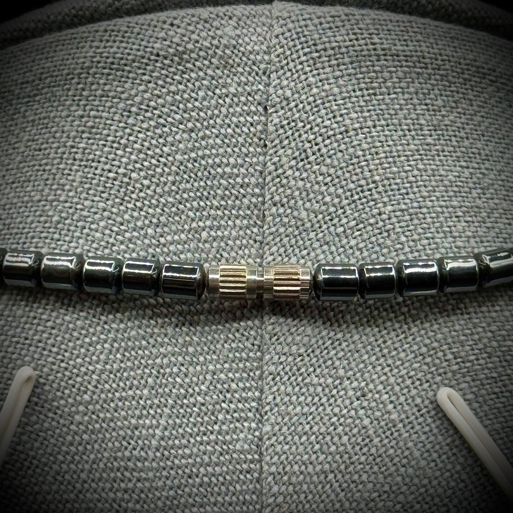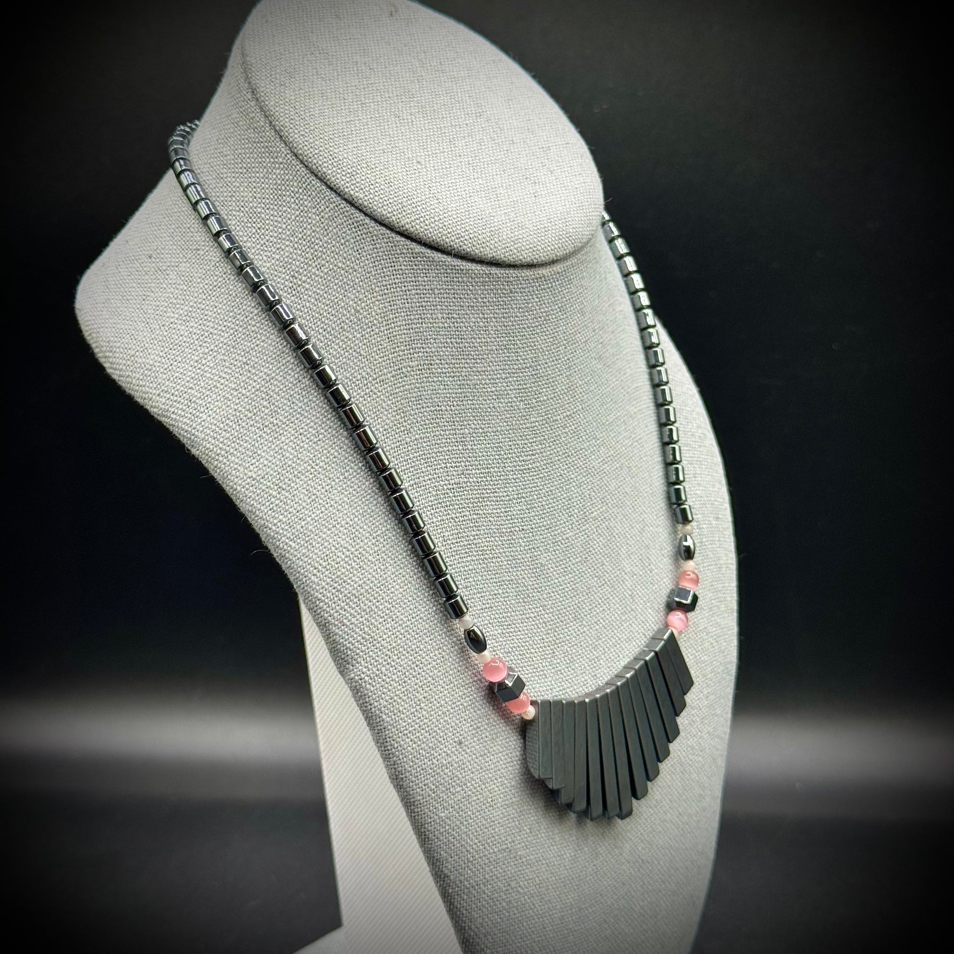 Vintage Hematite Necklace with Pink Cat's Eye Beads