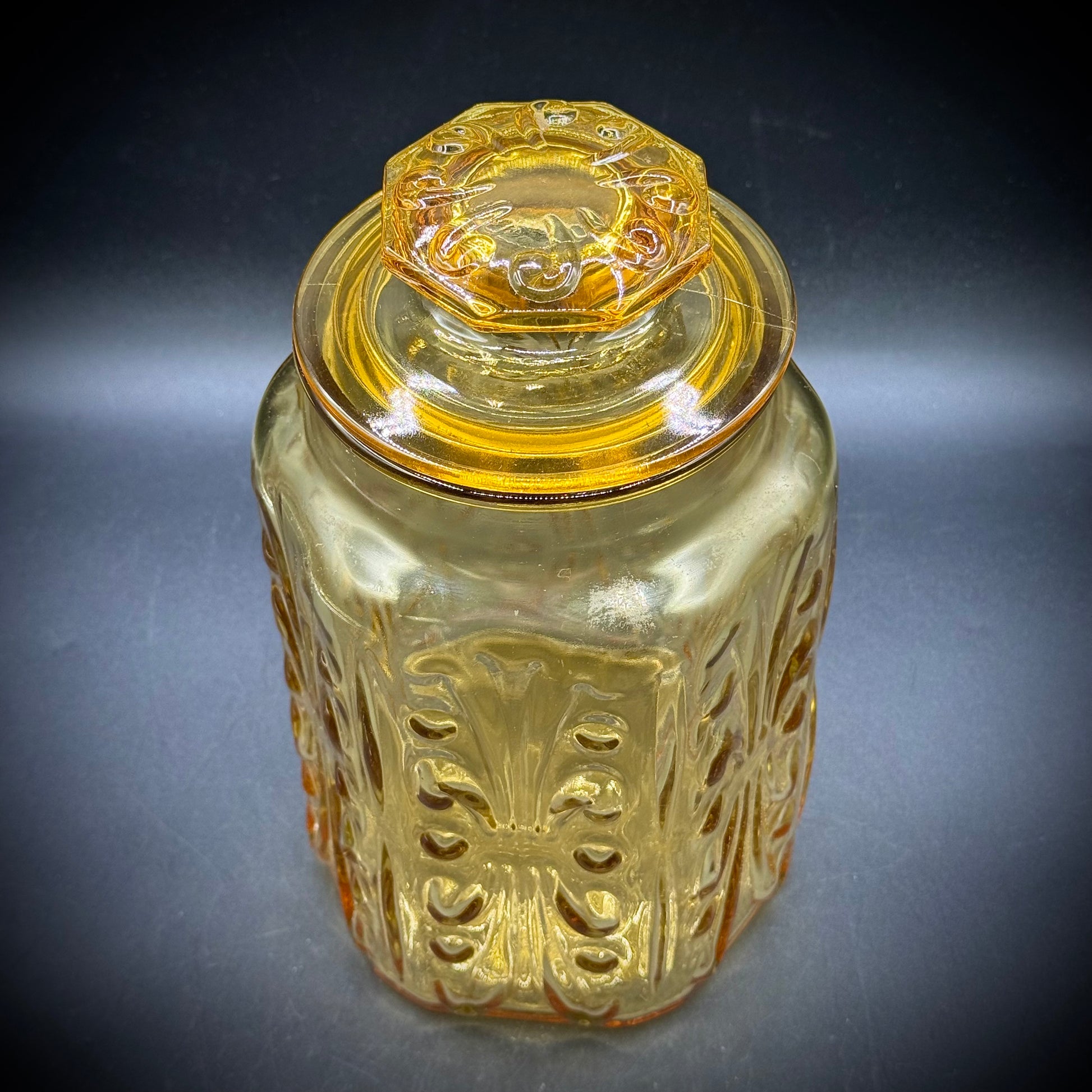Vintage L.E. Smith Atterburg Amber Lidded Canister
