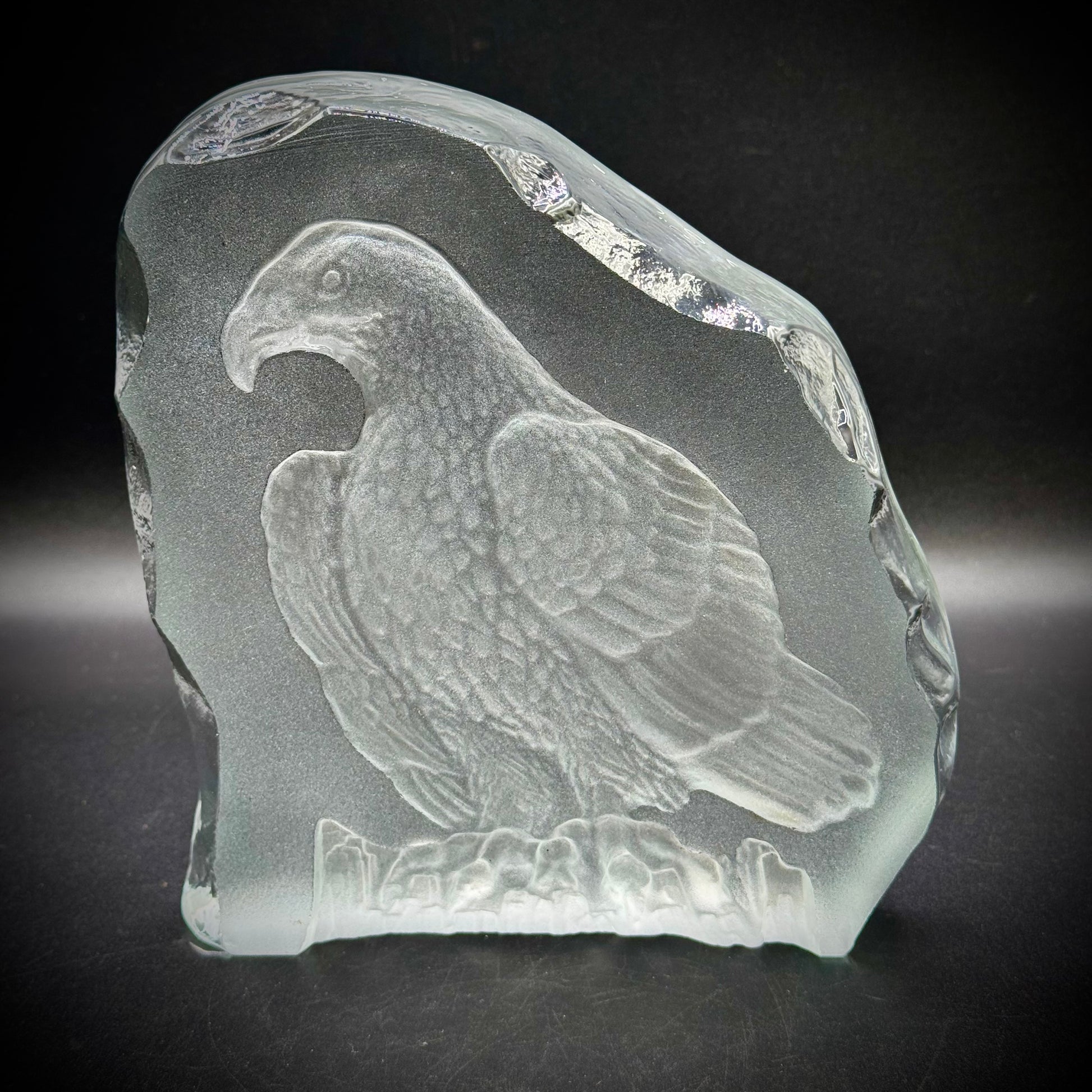 Vintage Nybro Poland Etched Glass Eagle Sculpture