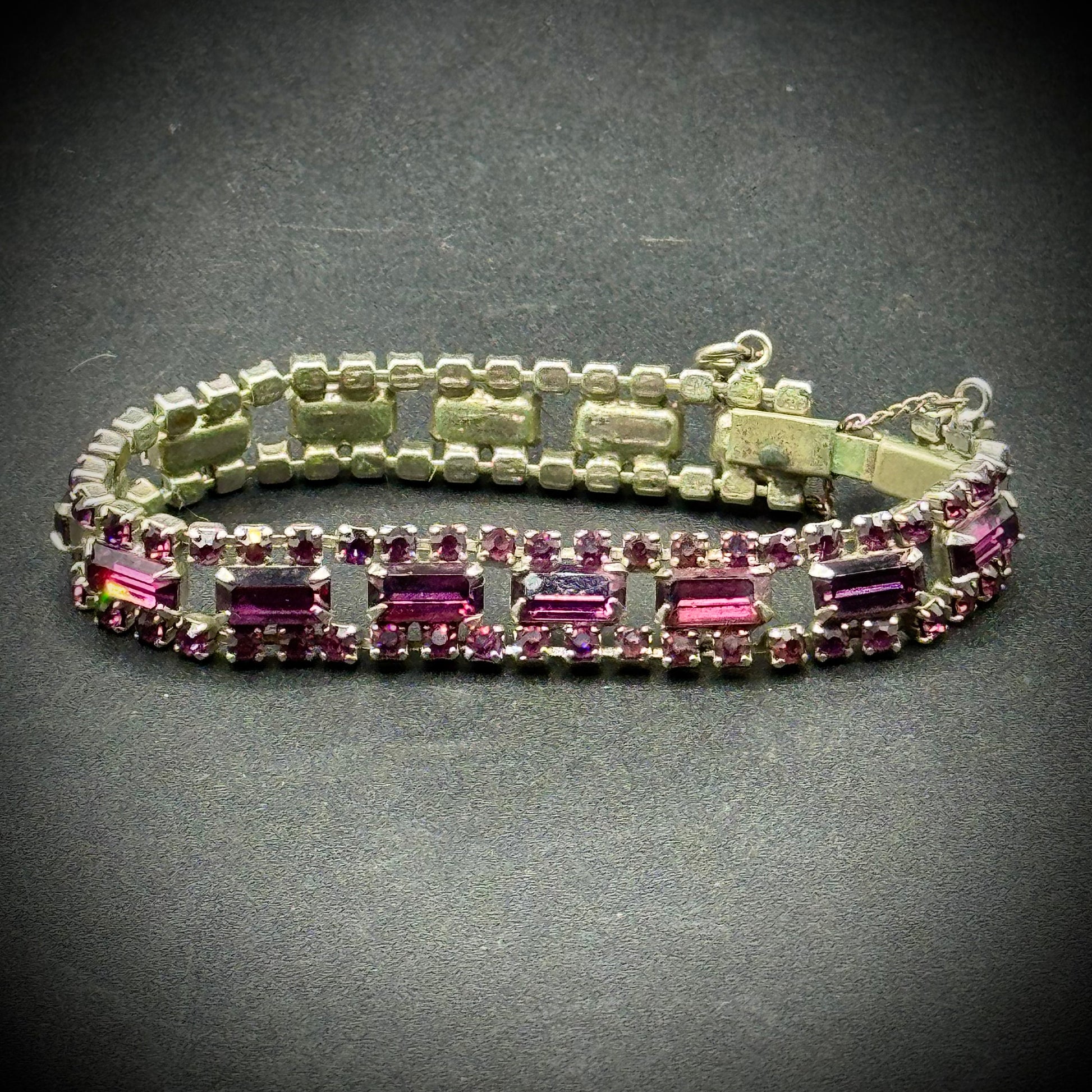 Vintage Purple Rhinestone Bracelet w/Safety Chain