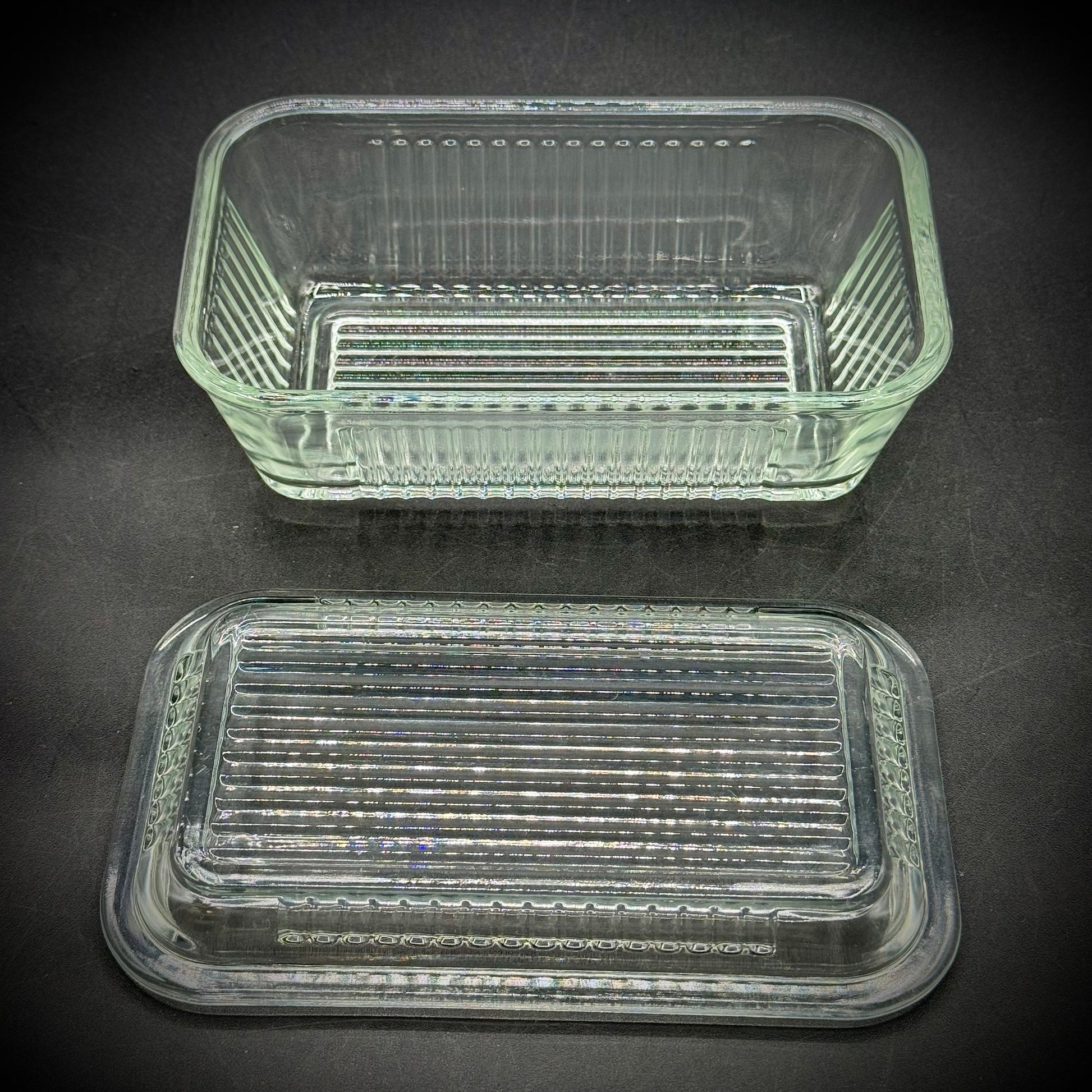 Vintage Retro Ribbed Glass Refrigerator Lidded Box