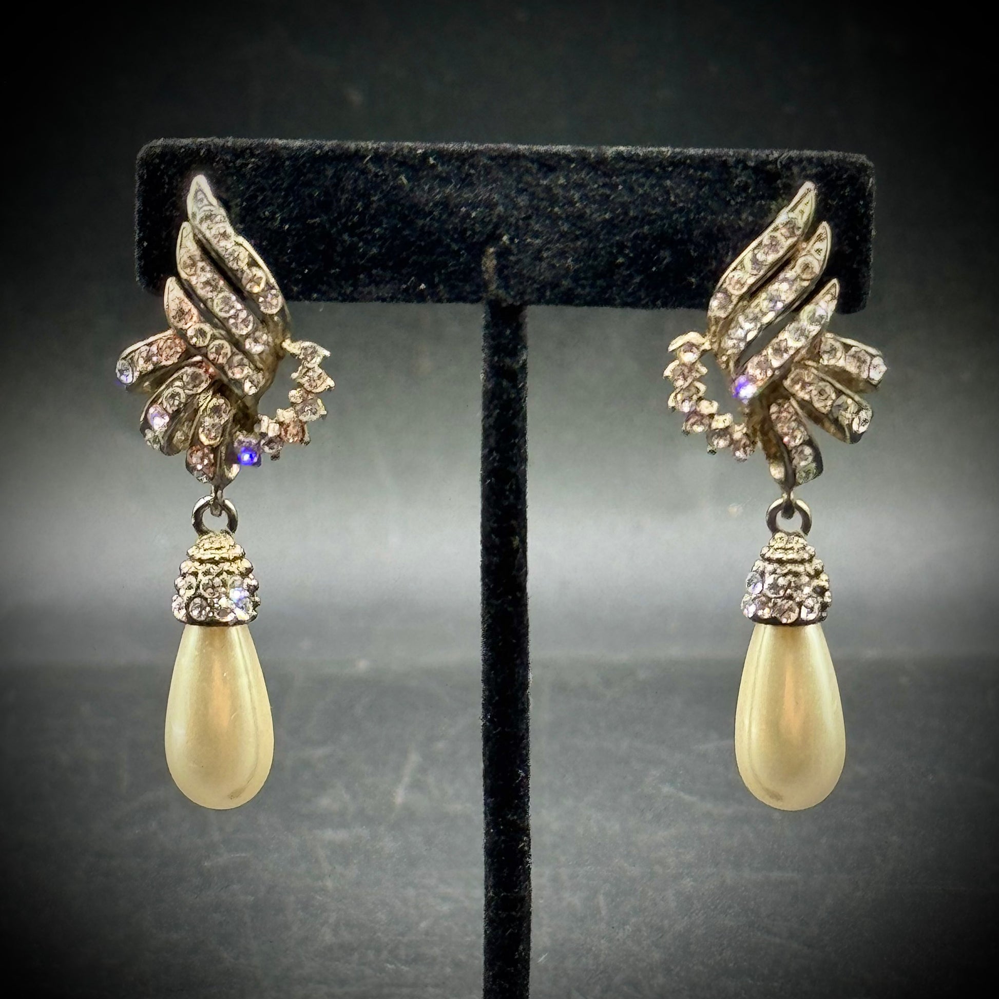 Vintage Rhinestone & Faux Pearl Formal Drop Earrings