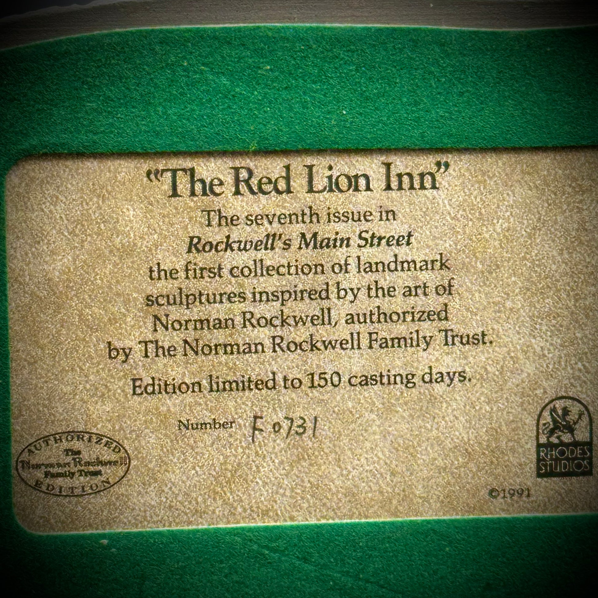 Vintage Rhodes Studio Rockwell's Hometown "The Red Lion Inn"