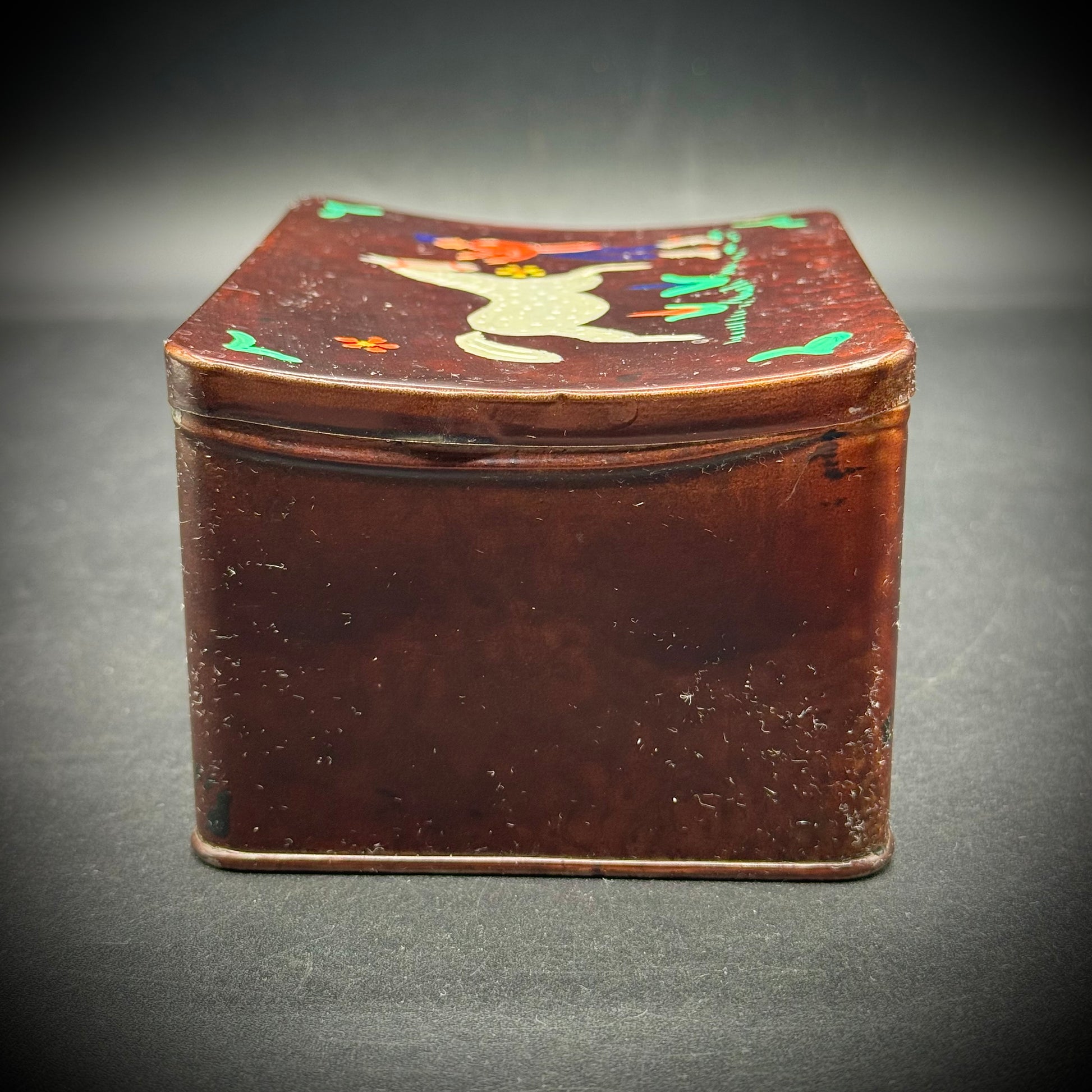 Vintage Tin Hinged Lidded Box with Horse Motif Art