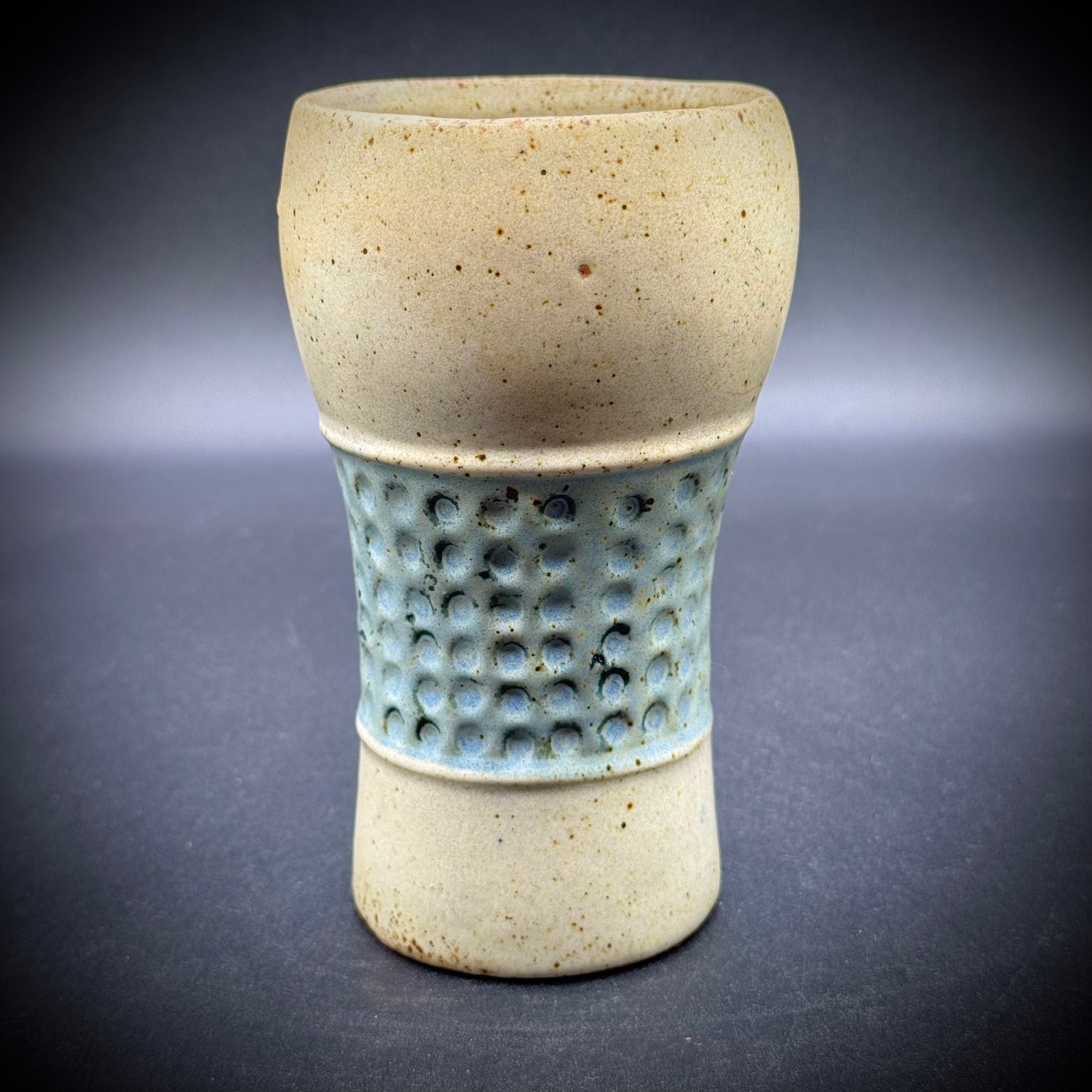 Vintage Uctci Pottery MCM Speckled Stoneware Face Vase Japan