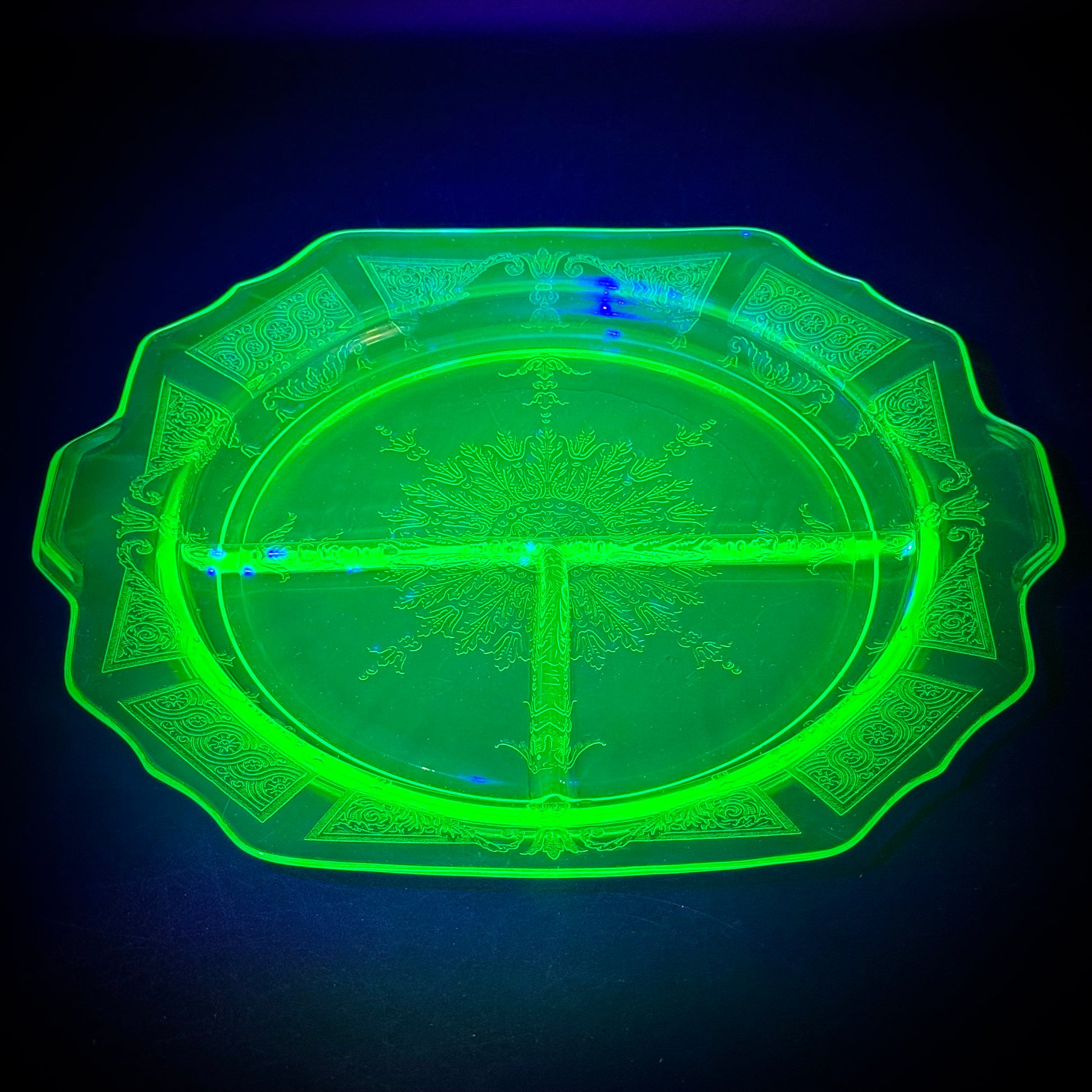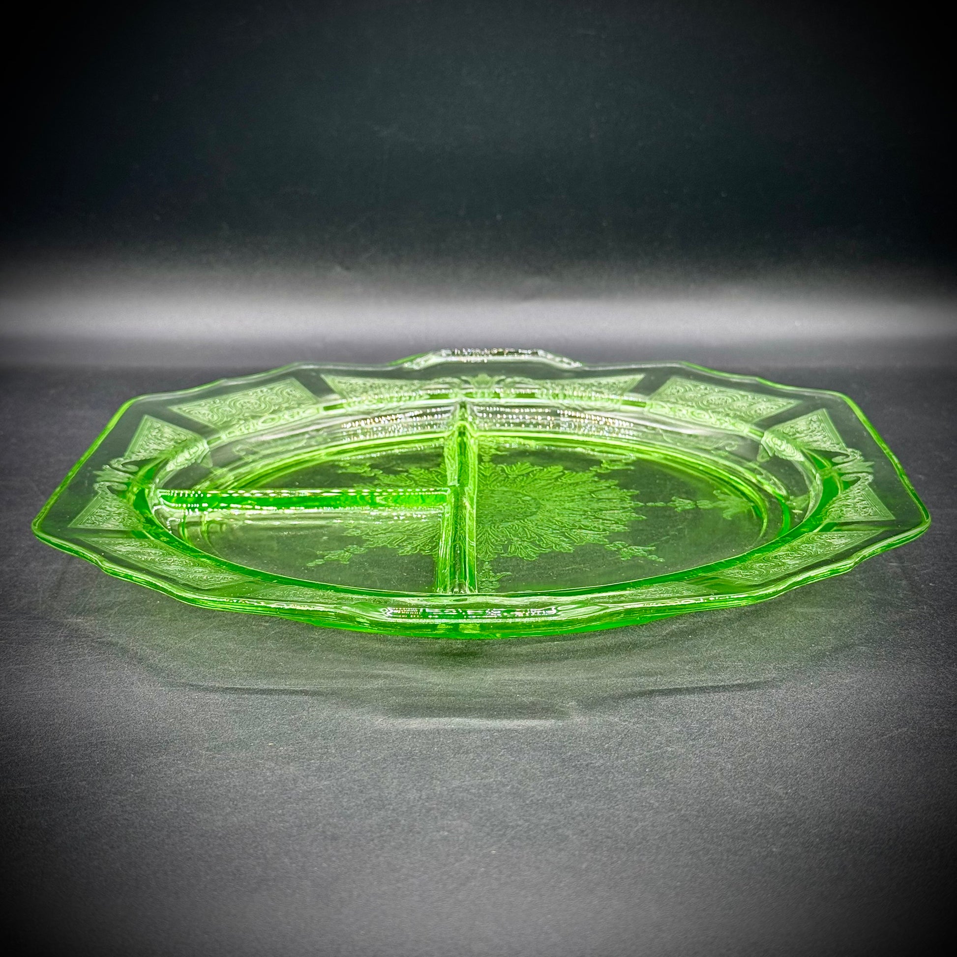 Vintage Uranium Glass Divided Dish