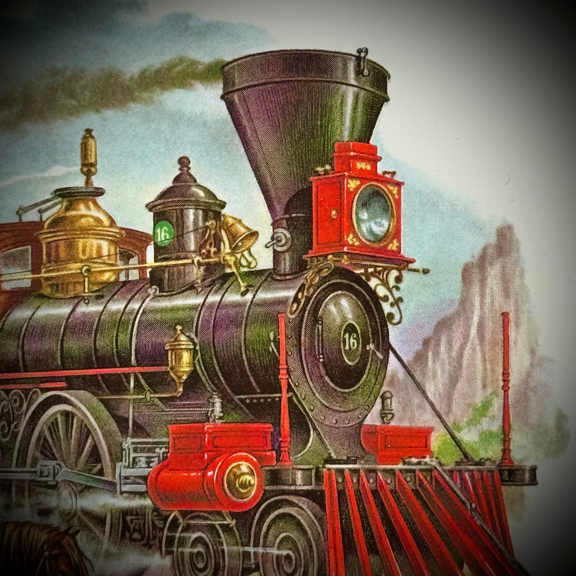 Vintage Western Railroad Motif Tile/Trivet with Blue Felt Backing
