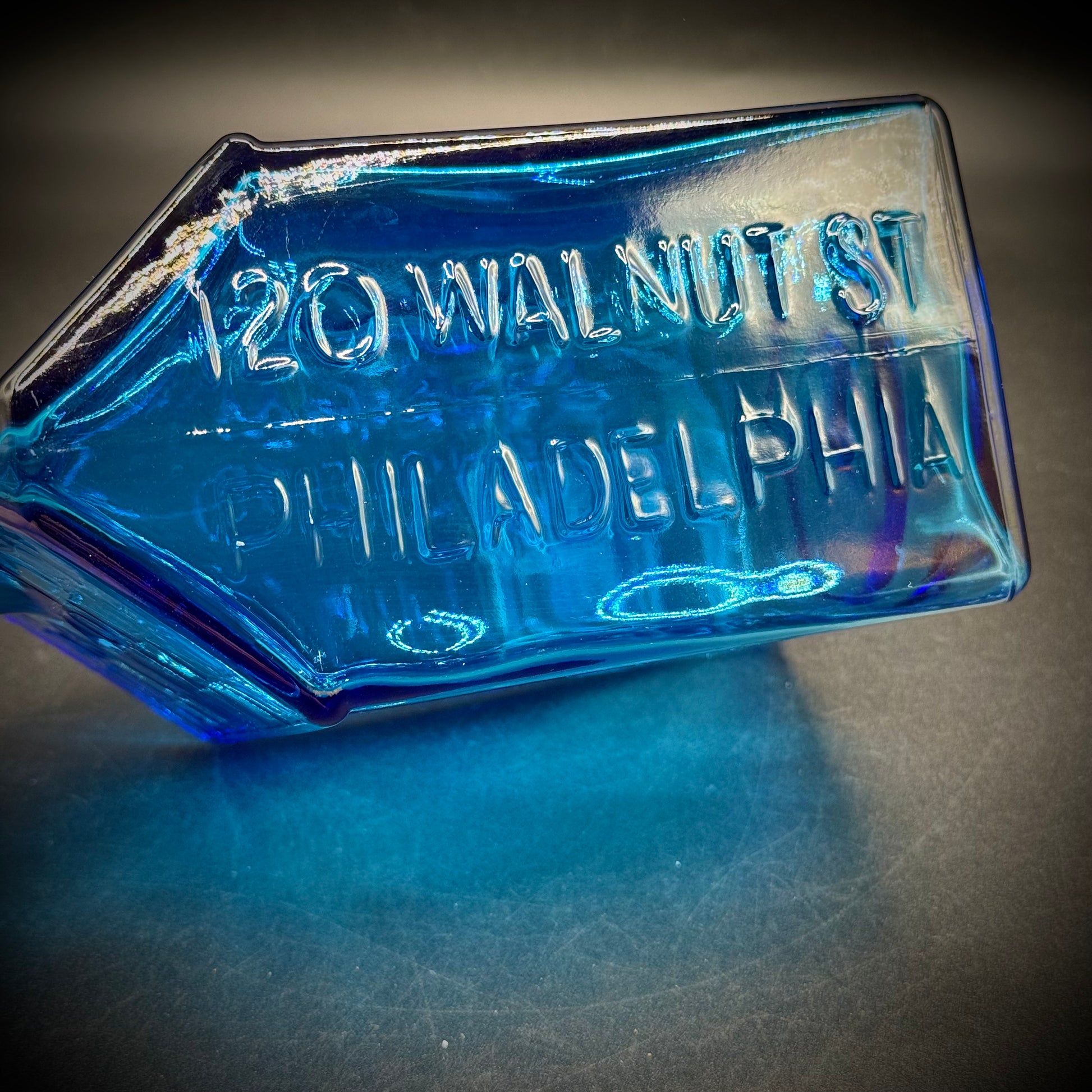 Vintage Wheaton Cobalt Blue Glass Bottle Log Cabin Motif