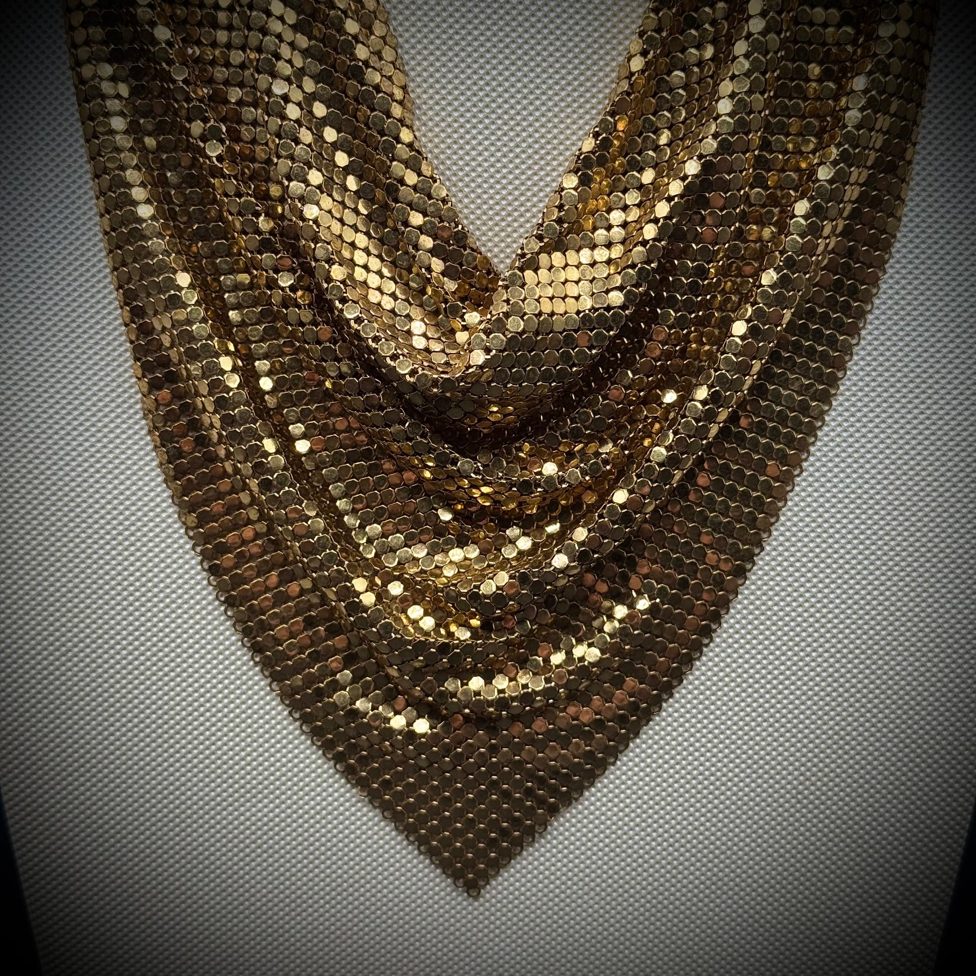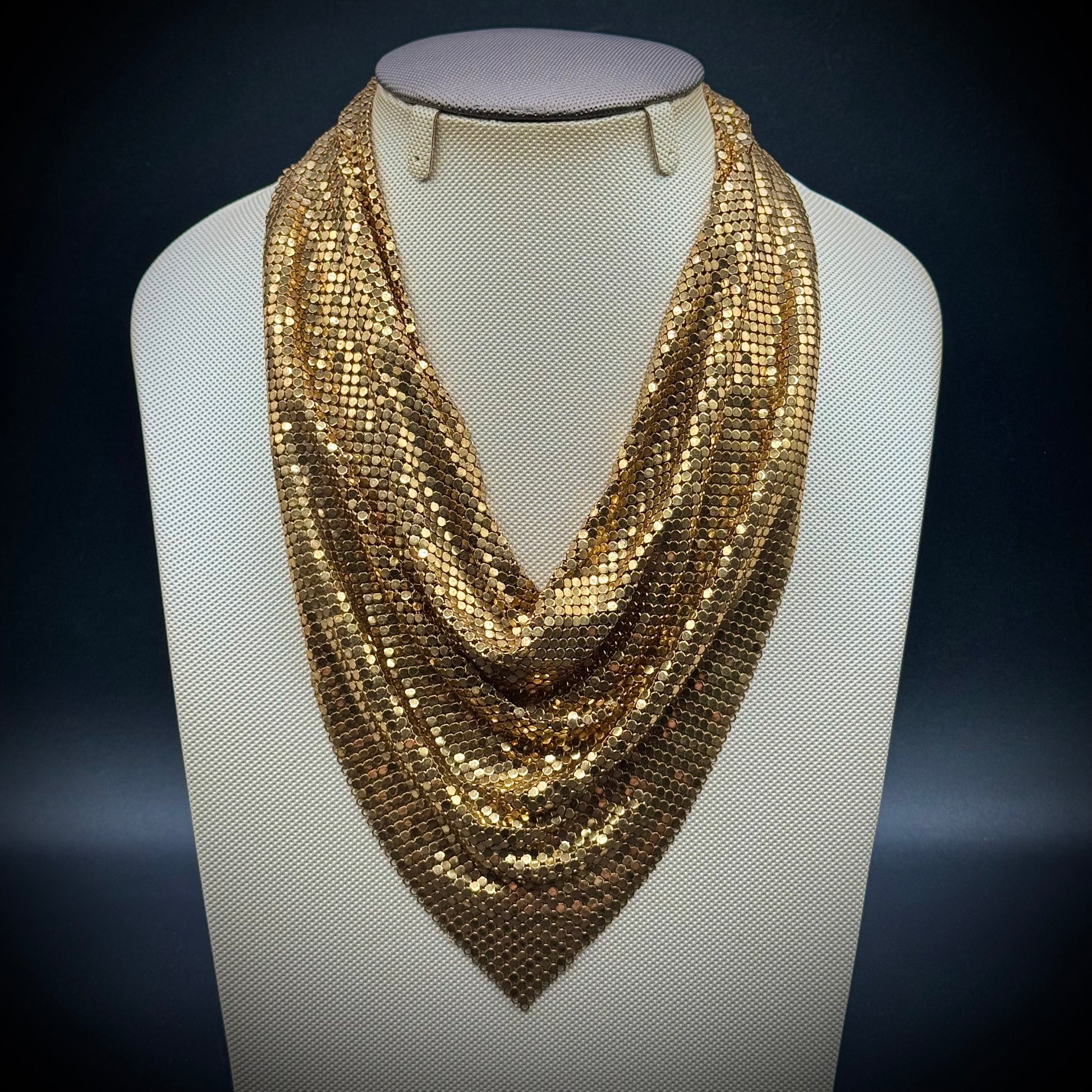 Vintage Whiting & Davis Gold Tone Mesh Bib Necklace