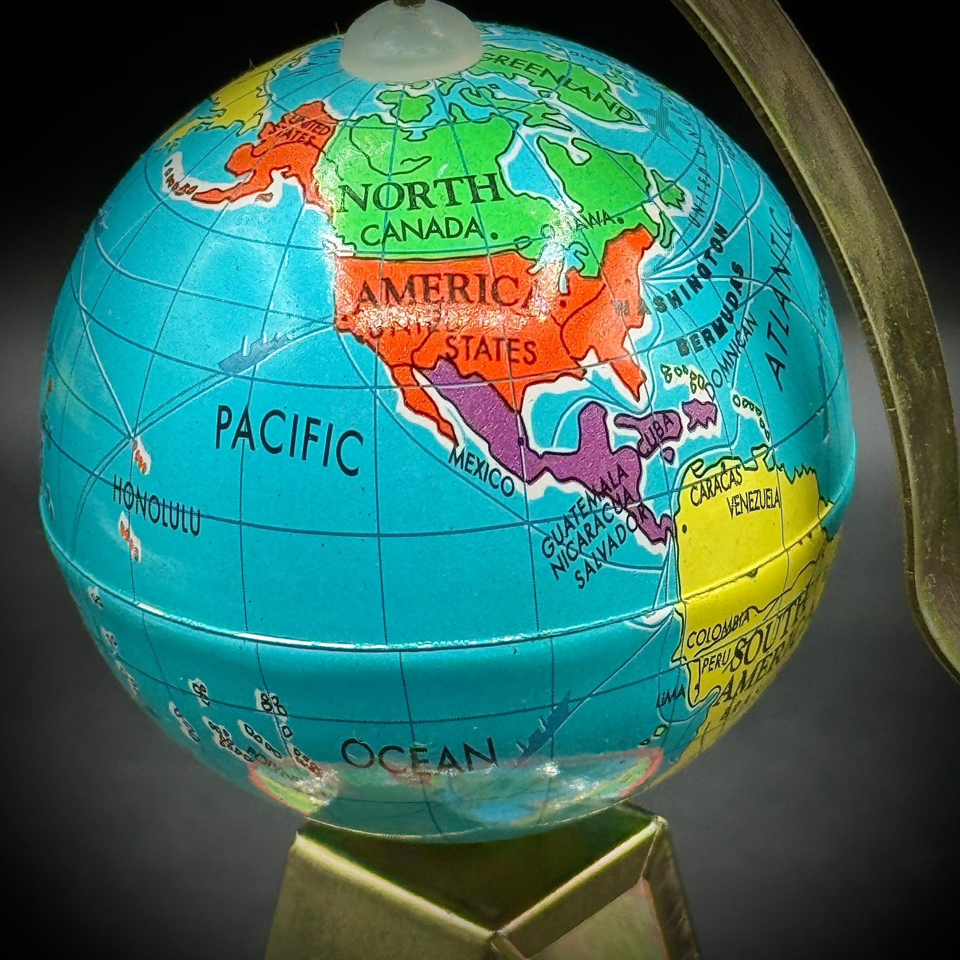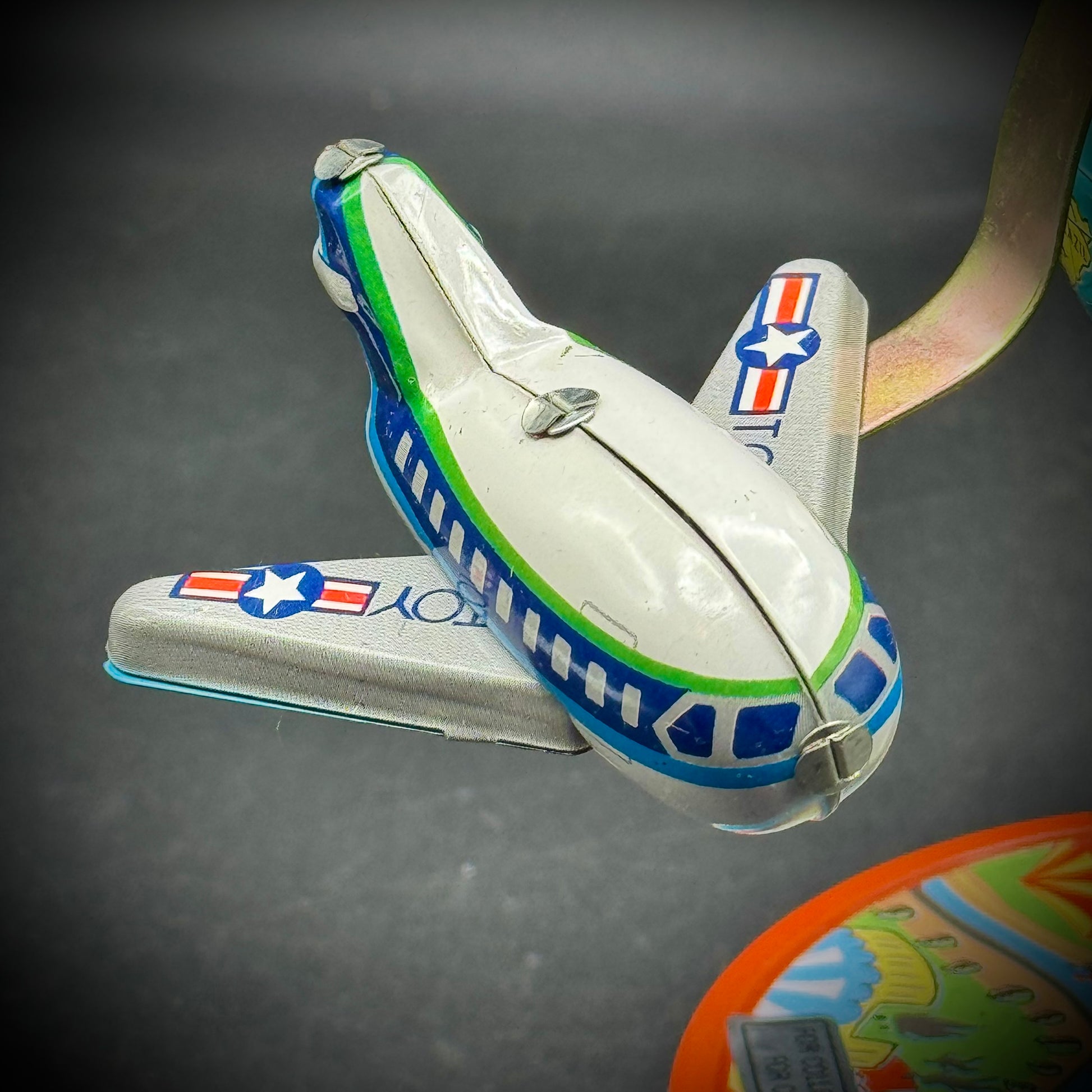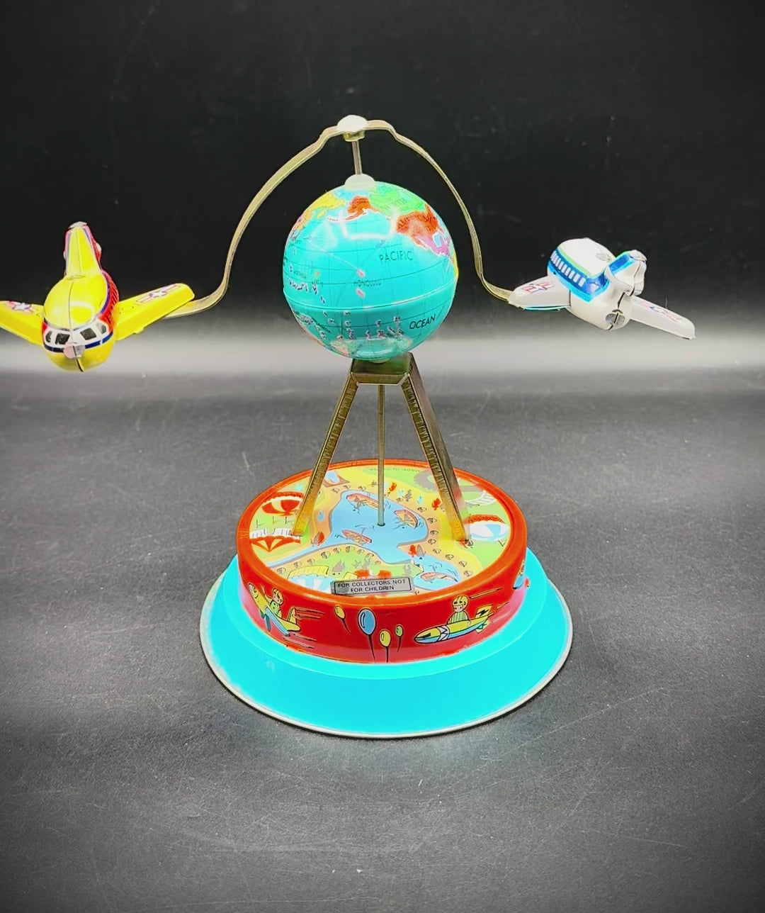Vintage Wind Up Tin Toy with Jet Age Travel Motif