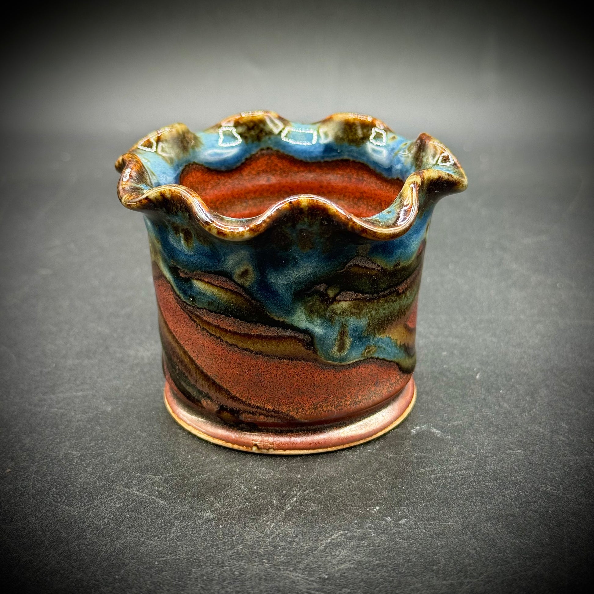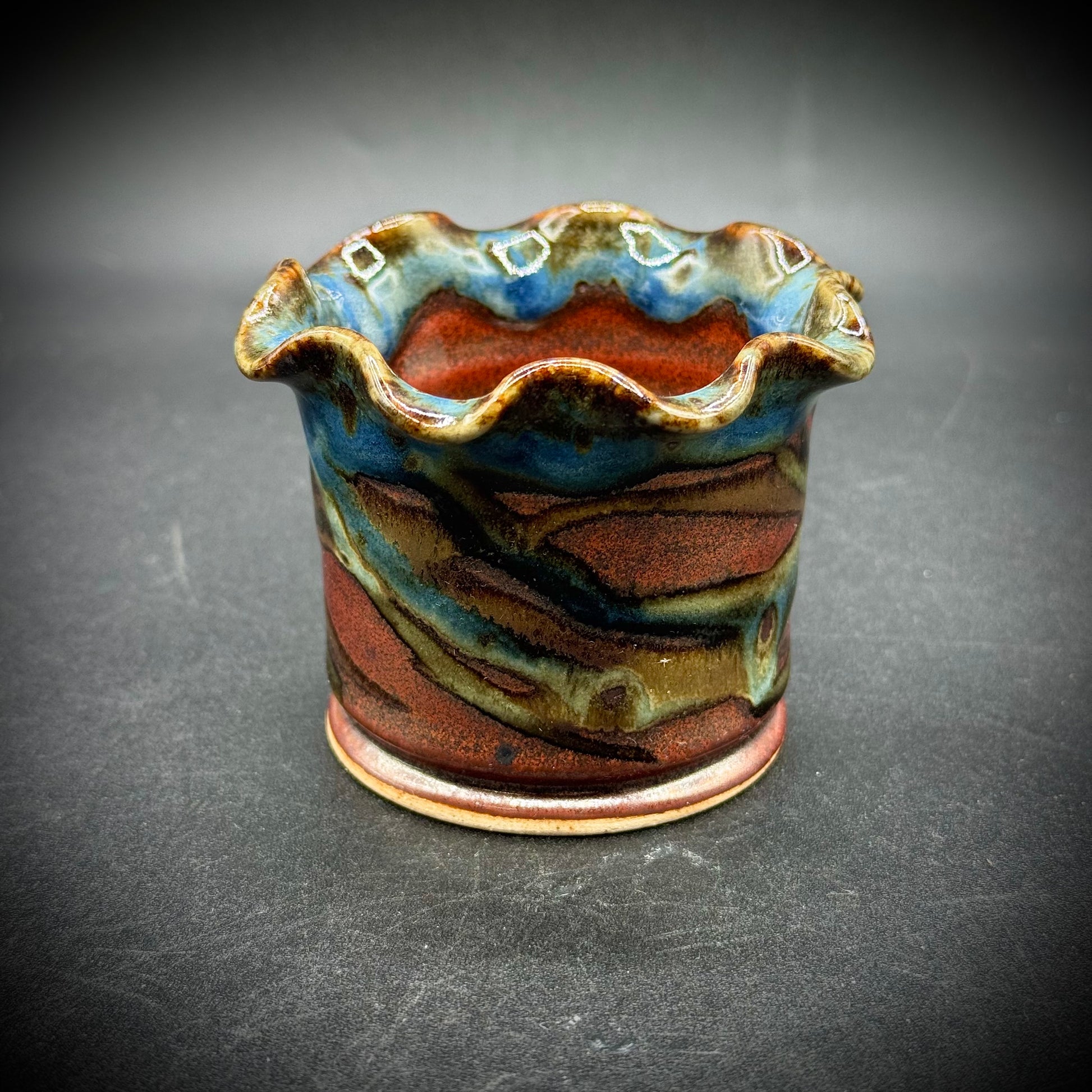 Whitefish, Montana Pottery Colorful Small Ruffle Vase