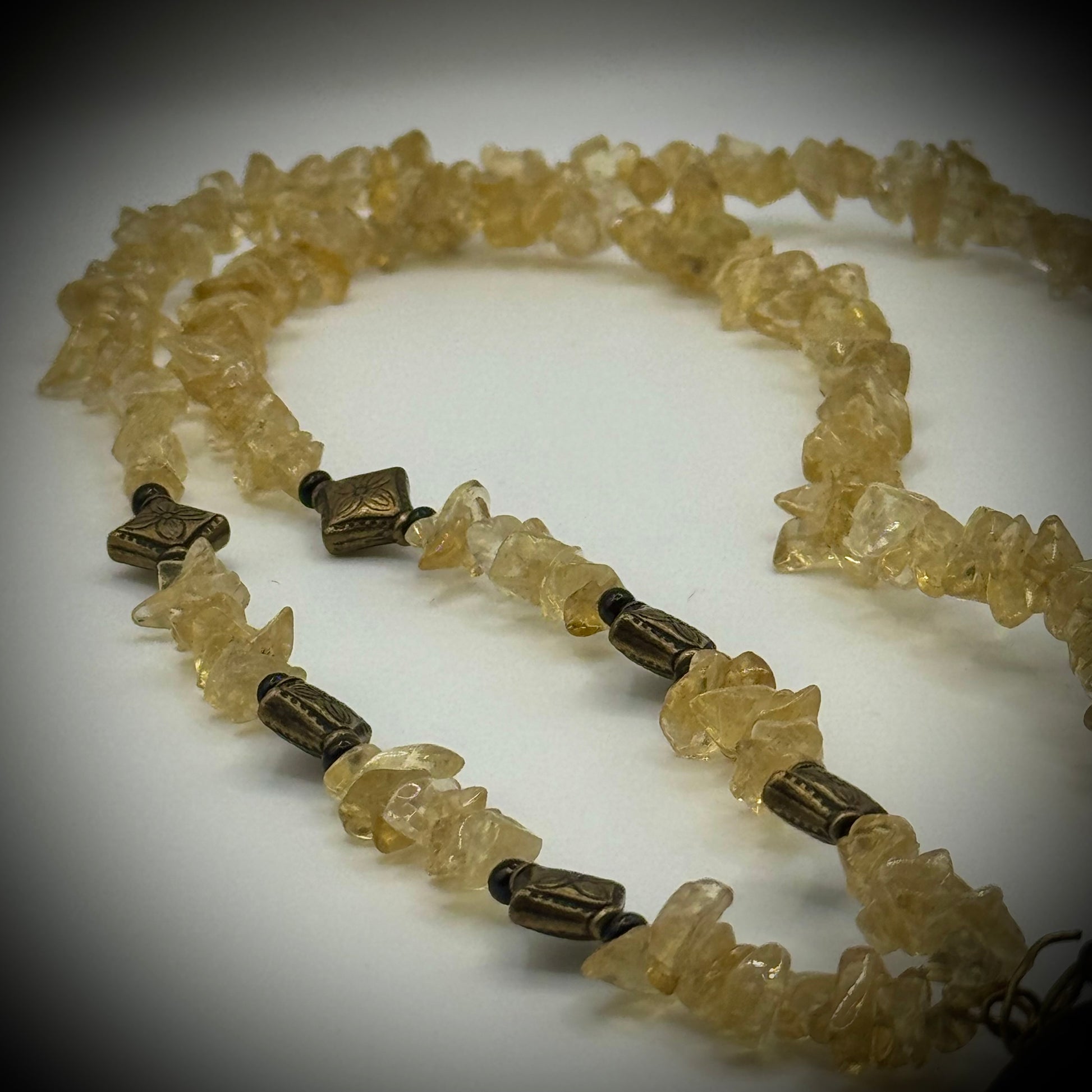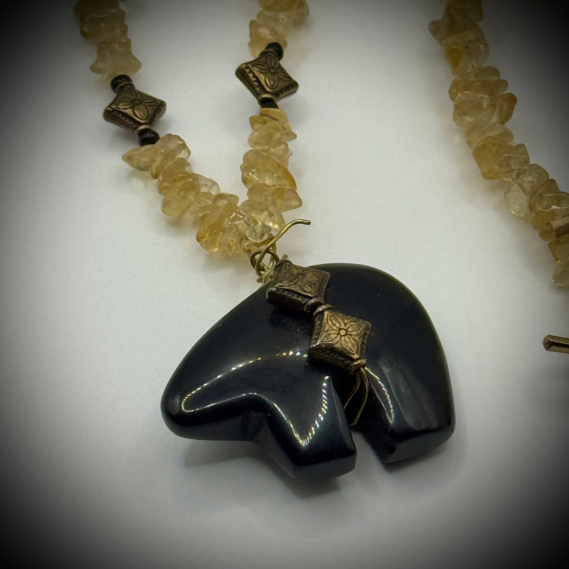 Yellow Quartz Necklace with Carved Onyx Bear Pendant